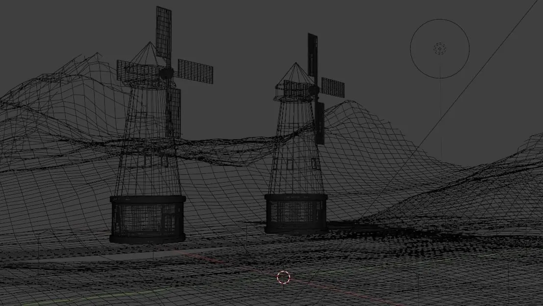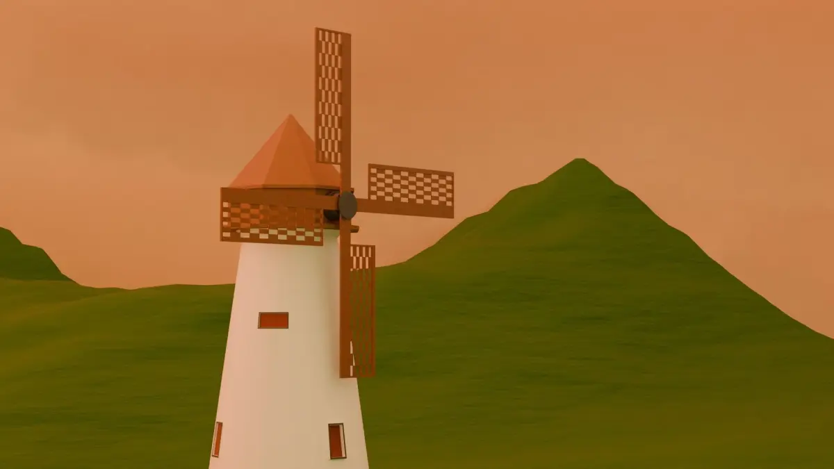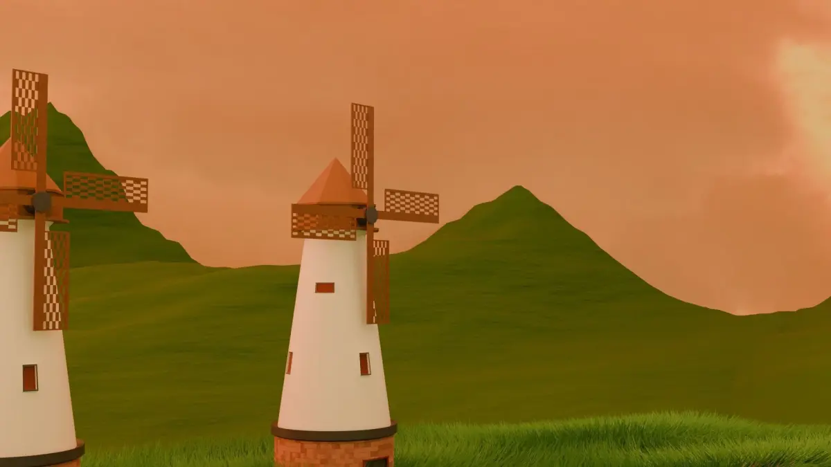 The evening landscape model is surrounded by wind turbines and nature. It's a fascinating and relaxing view. When there's an uncomfortable and anxious story, let your heart enjoy the nature around you.
