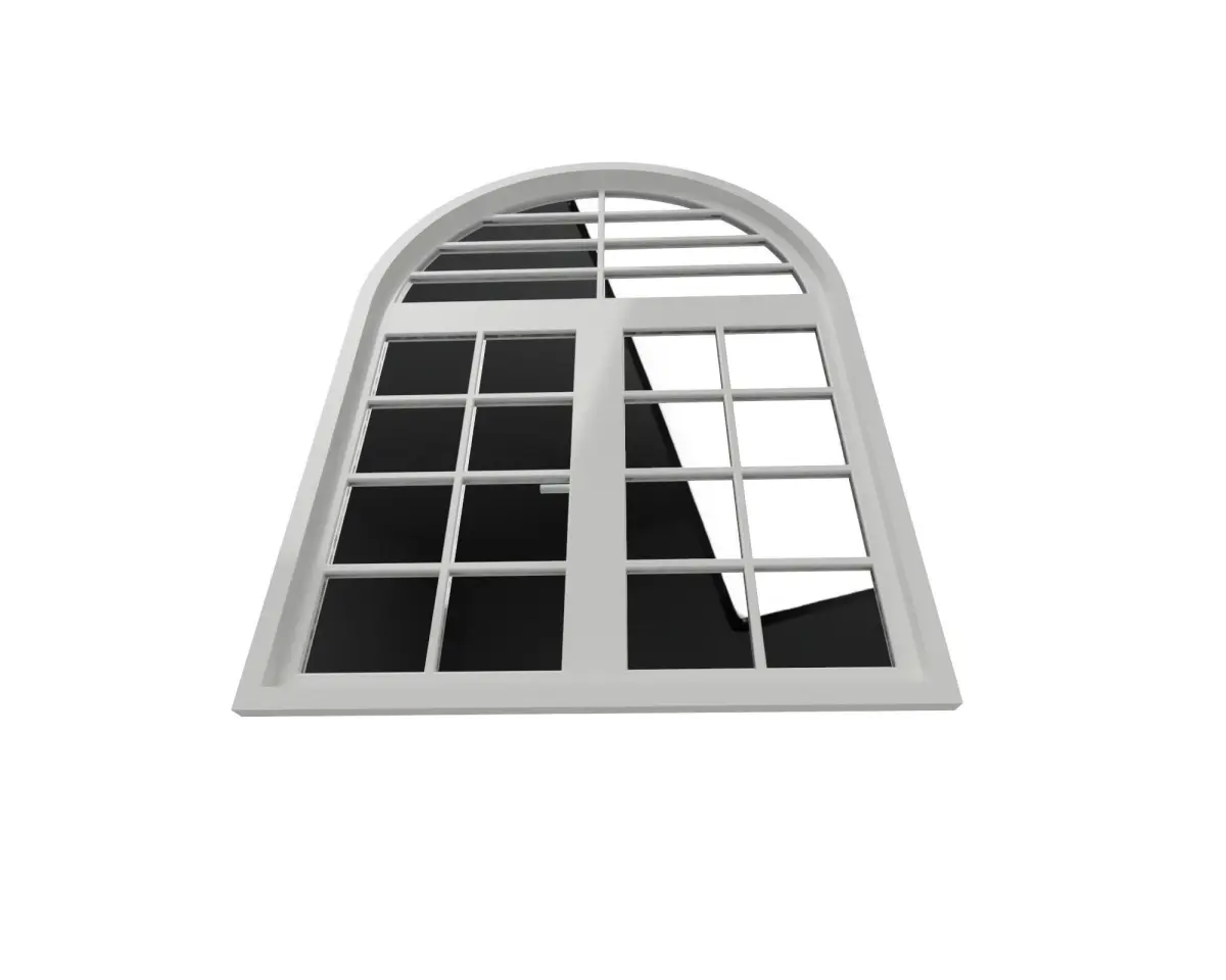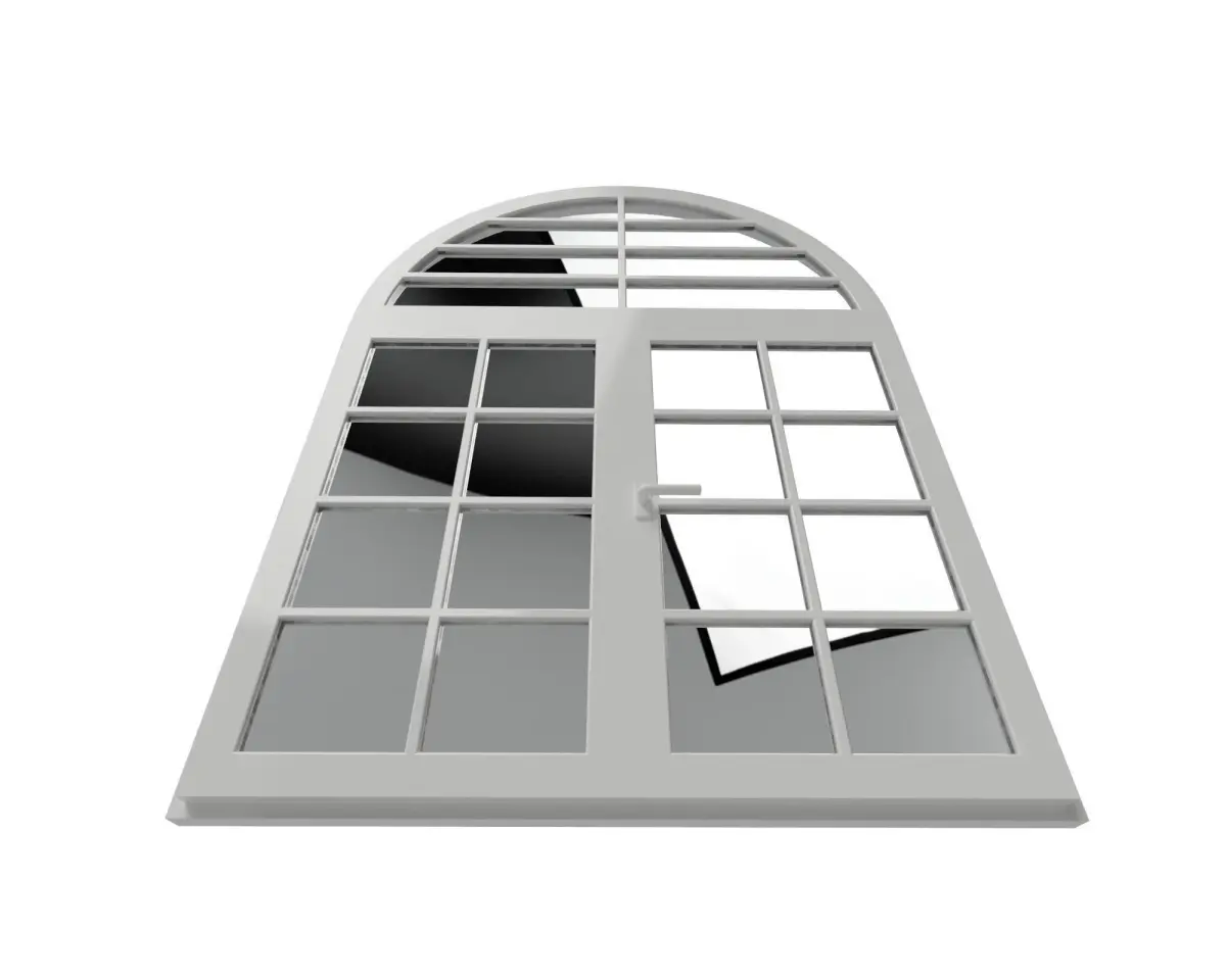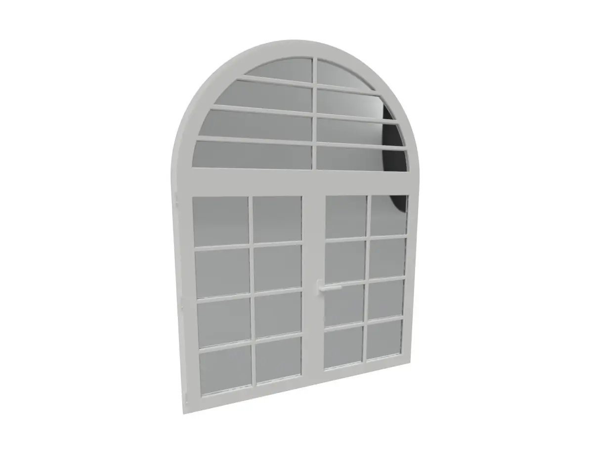 It is a window. This model is perfect for architecture scene. It can be used for interior design. Decorative window arc with two sides white color. Real size with interior dimensions. Clean geometry. Real rendering with white paint material and glass material. The model is divided in different components. Model resolutions are optimized.