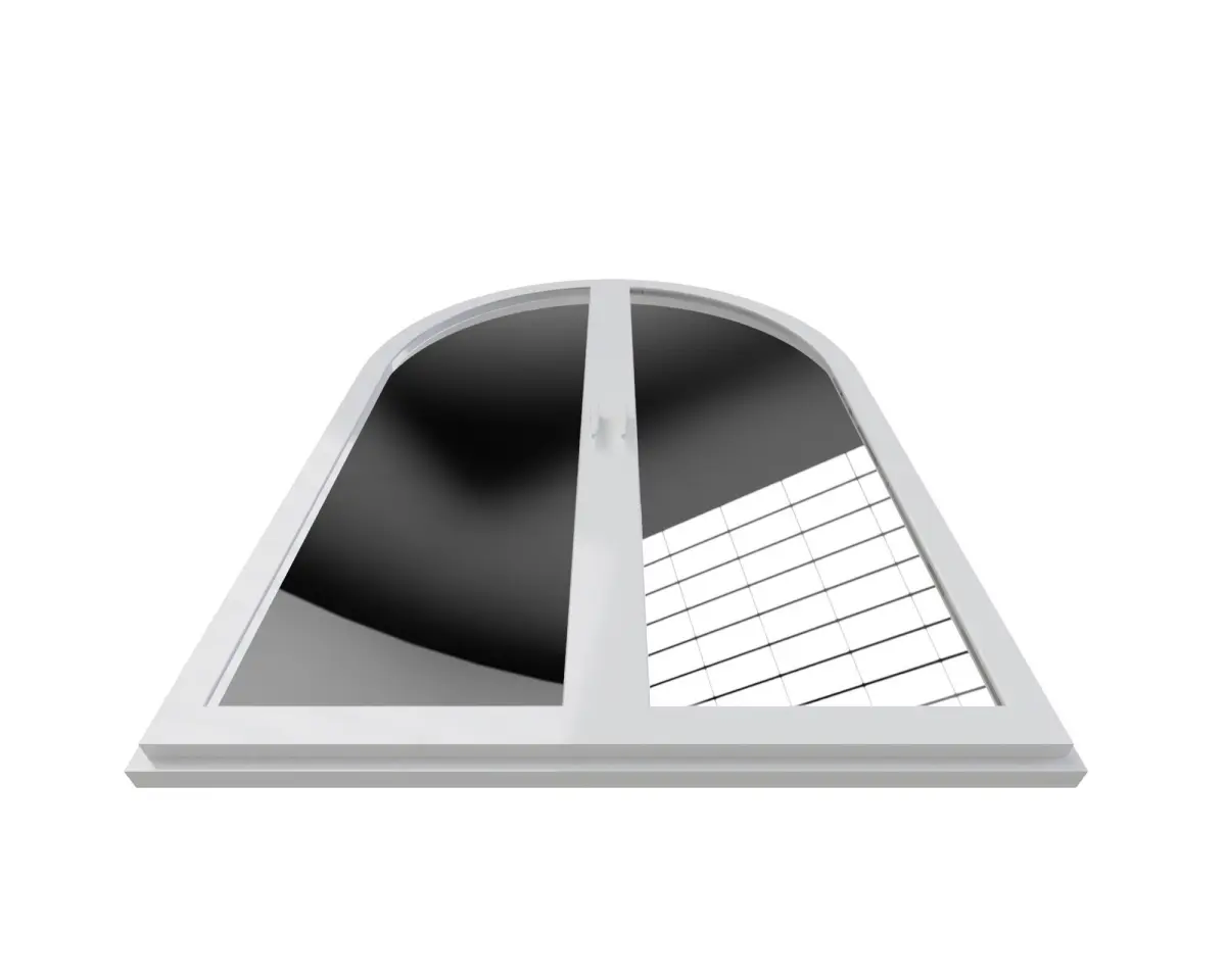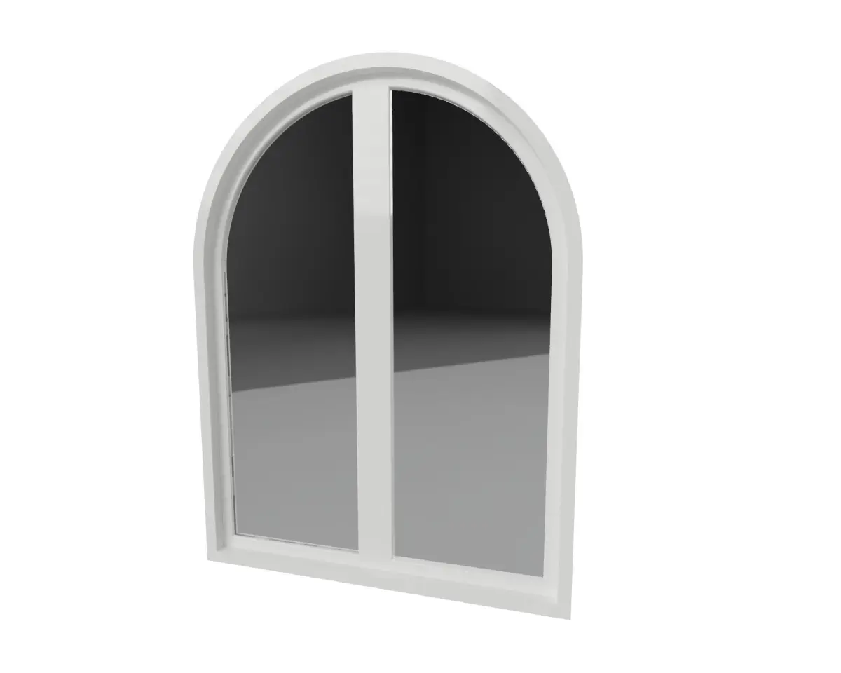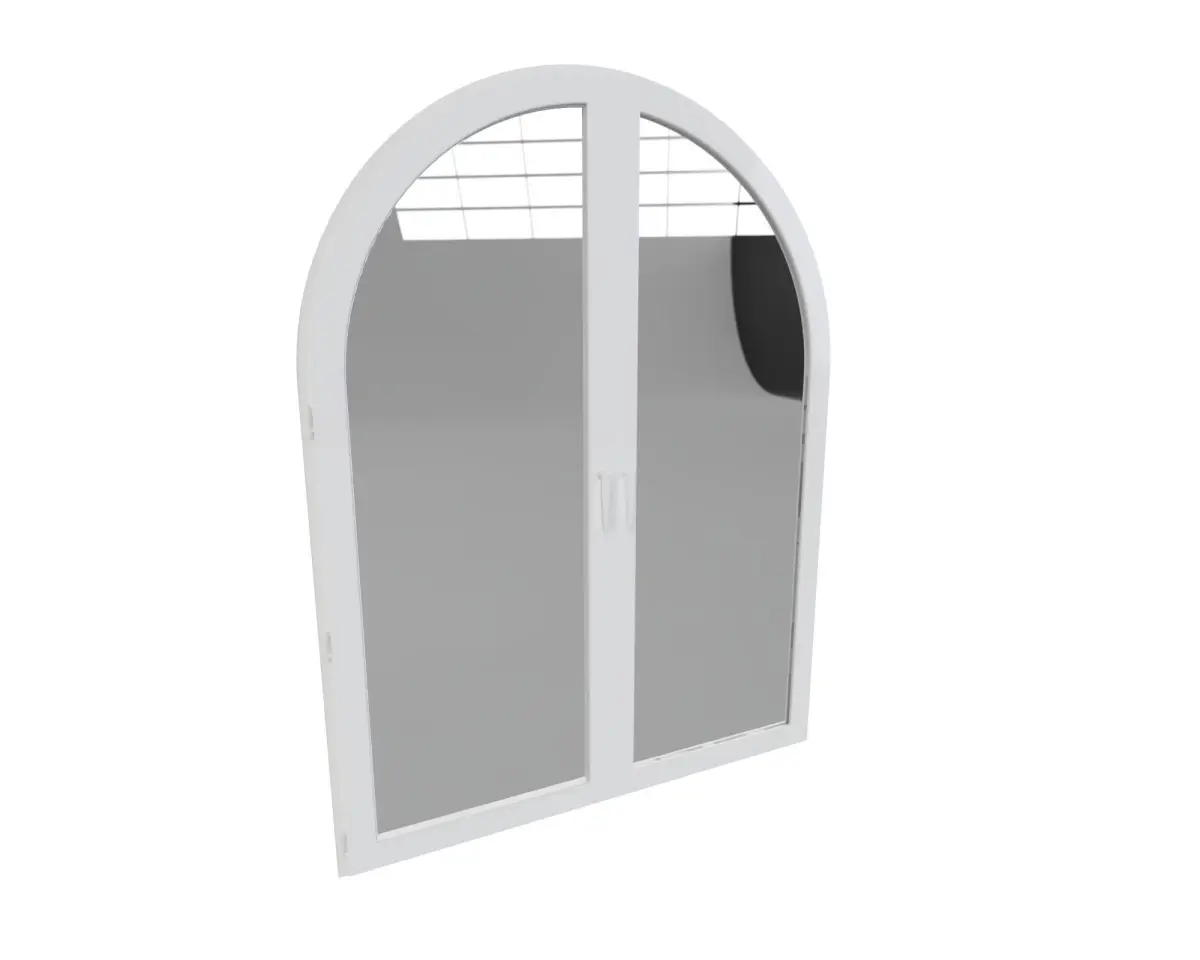 It is a window. This model is perfect for architecture scene. It can be used for interior design. Arc window with two sides aluminium white color. Real size with interior dimensions. Clean geometry. Real rendering with white paint material and glass material. The model is divided in different components. Model resolutions are optimized.