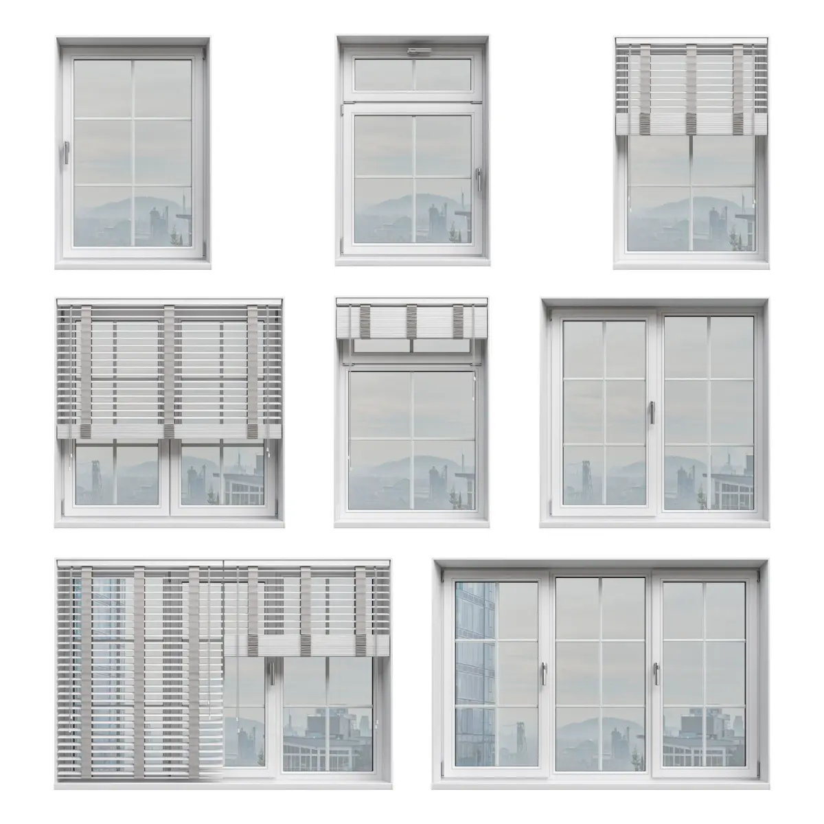 The set consists of 8 windows and 4 materialsAlso included are window blinds in 4 opening options.All sizes correspond to real onesAll objects have corresponding namesThe model is located at the center of coordinatesTexture paths have been clearedWindow and texture sizes are easily edited