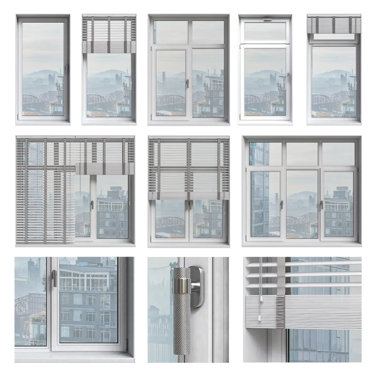 The set consists of 8 windows and 4 materialsAlso included are window blinds with 4 opening options.All dimensions correspond to real onesAll objects have corresponding names.The model is located at the center of coordinatesTexture paths have been cleaned upWindow and texture sizes are easily editable