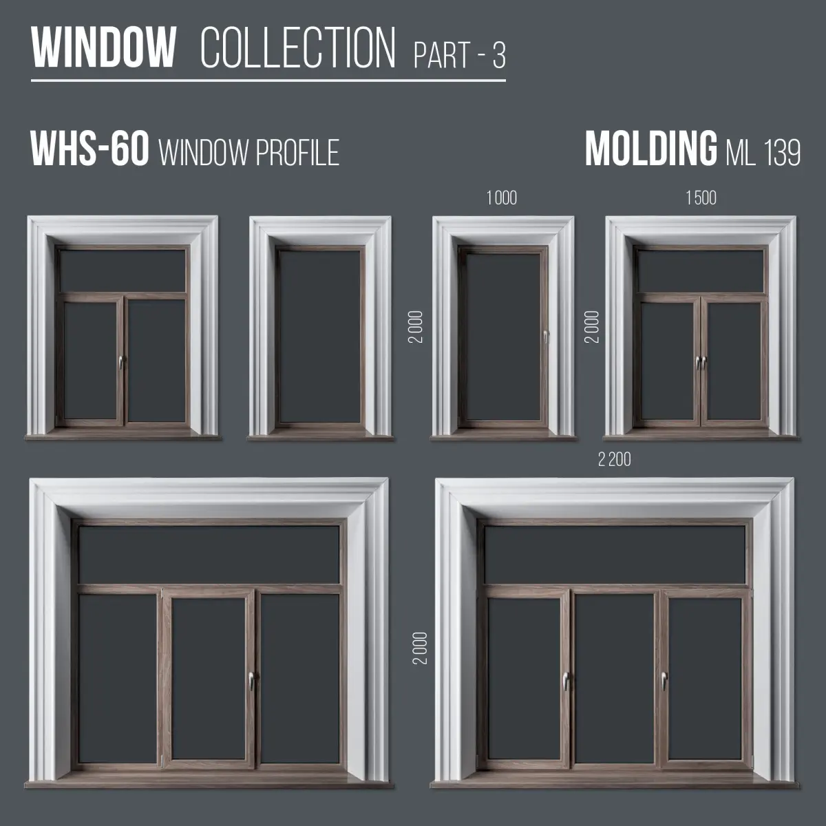 The kit consists of 6 windows and 4 materials.All sizes correspond to realAll objects have corresponding names.The model is located in the center of coordinates.Window sizes are easy to edit.