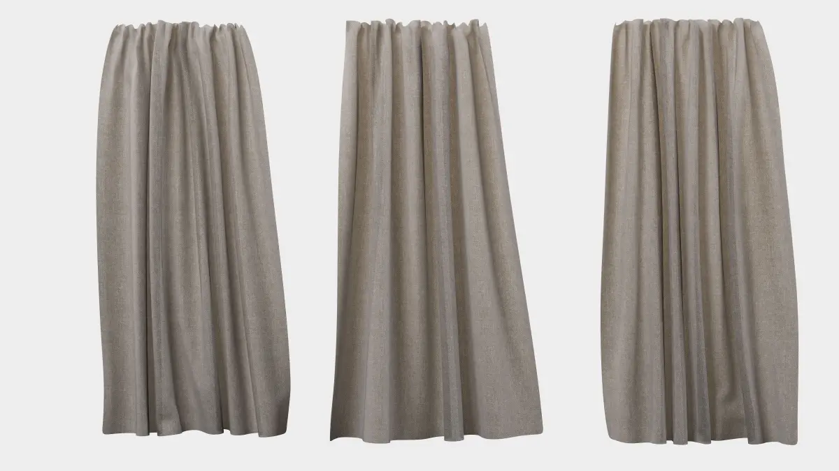Set of 9 curtains with different widths and shapes. With realistic half-folds and photorealistic textures.