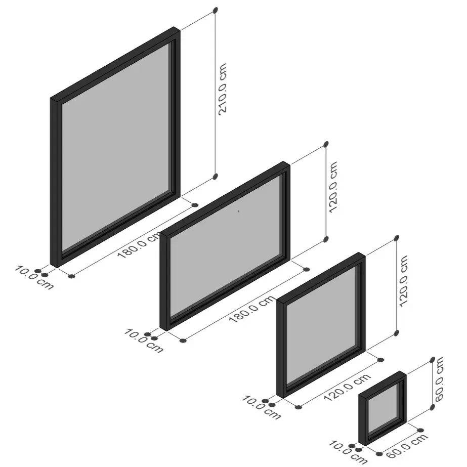 - Large/Patio: 180 x 210 cm (6' x 7')