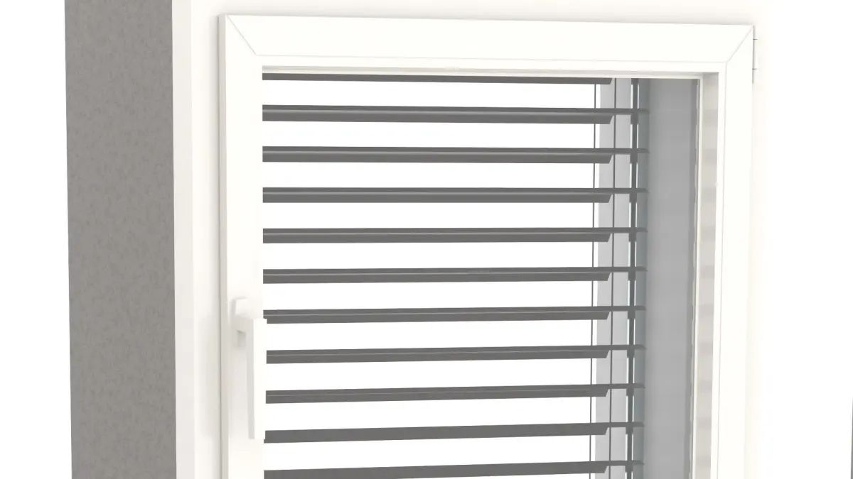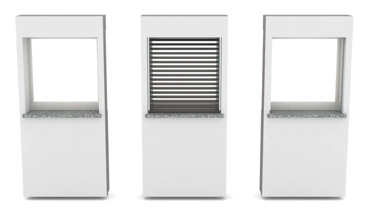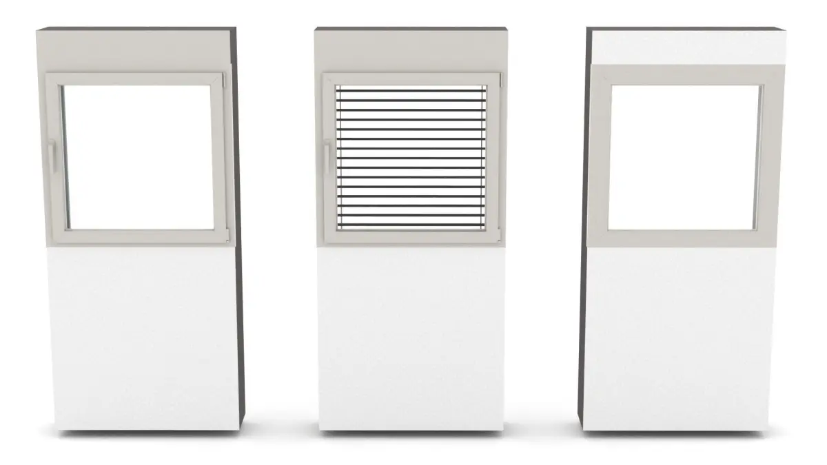- a small fixed window with mounted blinds (in addition)