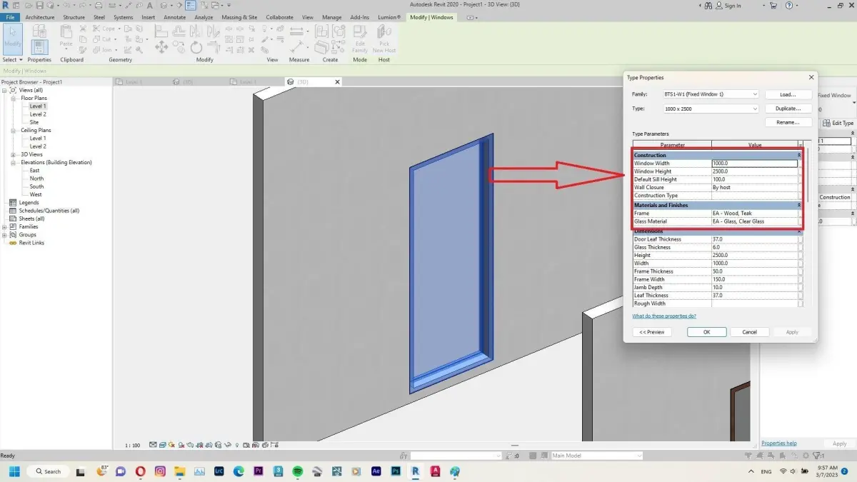 Window Modern Style-01 with Simple Parametric ,available to custom material, Height and Width Dimension & you can use this family in any revit project.