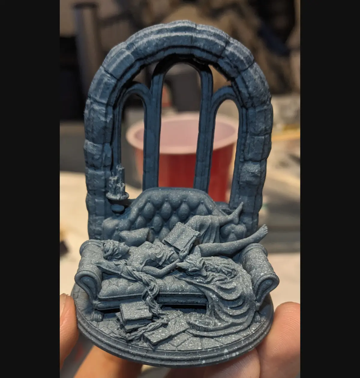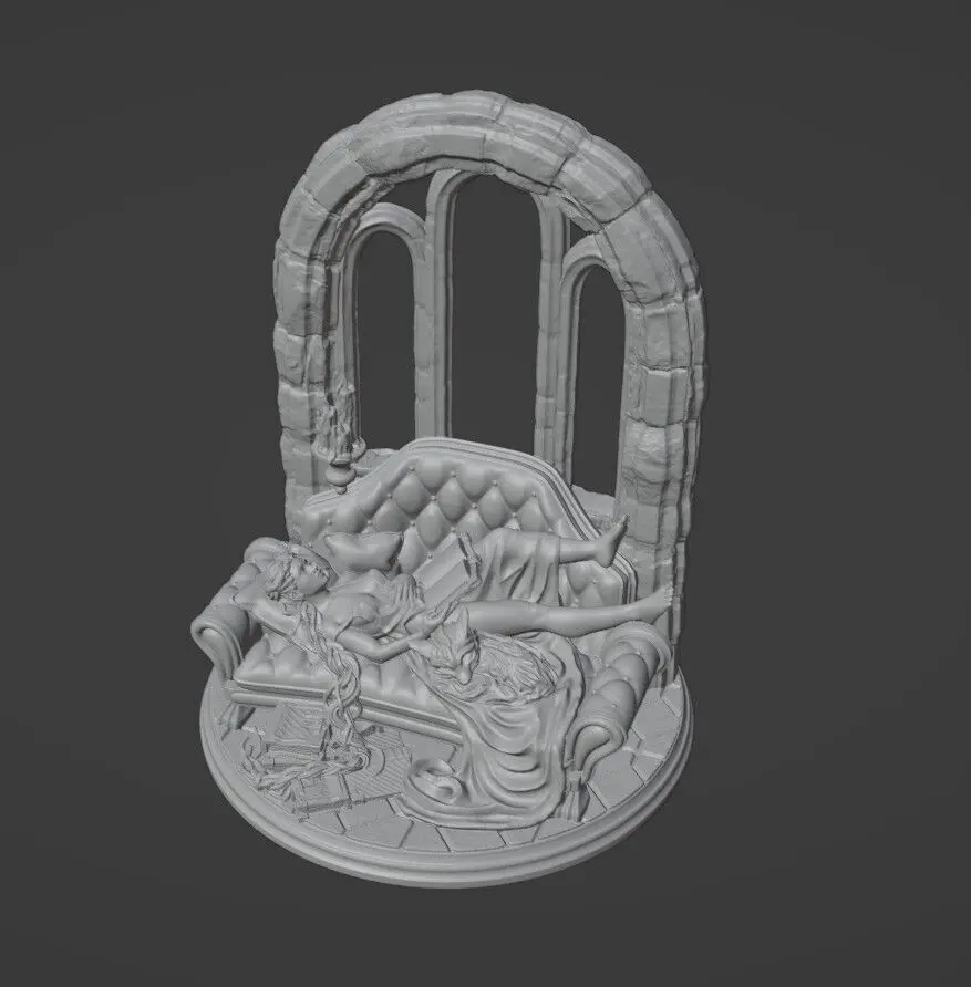 This a is a figurine that can be used as decor or as a prop/character for dnd. The model is currently sized to slightly above 35mm mini scale for a balance of size and paintability but should be easy to rescale in any slicer of choice.