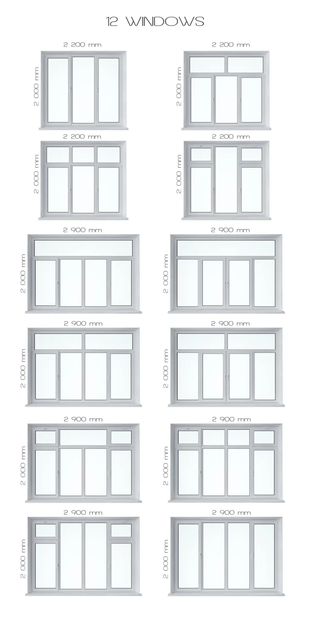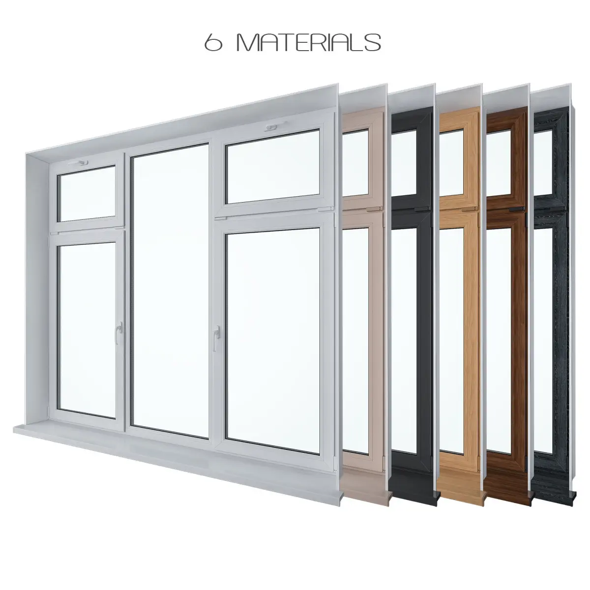 The set consists of 12 windows and 6 materialsThe model is located in the center of coordinatesThe sizes of windows are edited