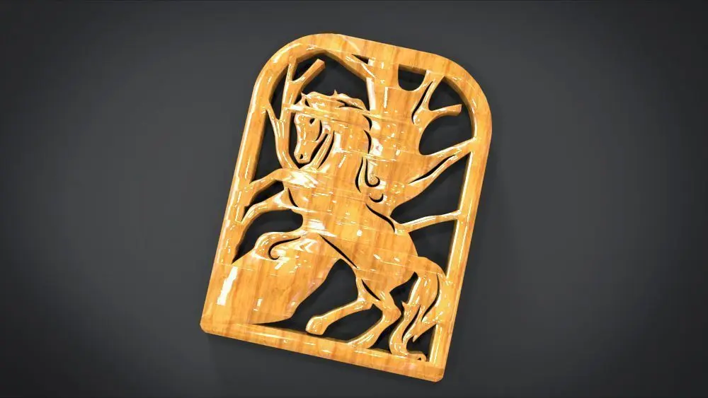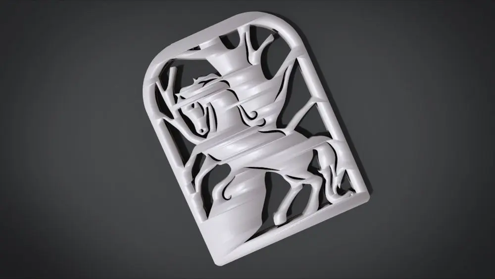 Window ventilation ornaments with horse motifs 3D model done in Blender.