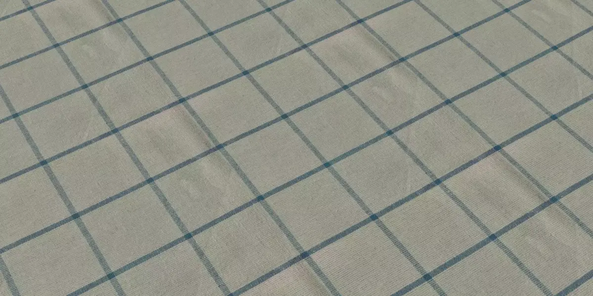 A refined windowpane linen fabric featuring a soft sage base with blue crossing stripes, delivering natural fiber slubs and gentle yarn variation that read cleanly on table linens, apparel, curtains, and vintage props where pattern clarity and organic texture matter.The set is seamless/tileable at 4096×4096, preserving warp‑weft detail and subtle cross‑grain highlights so checks remain sharp without moiré, even on large surfaces or draped simulations under grazing light.Included maps: Base Color (albedo), Roughness, Normal (OpenGL), Ambient Occlusion, and Height/Displacement; files are consistently named windowpane_linen_check_4k_[map].png for quick import into Unreal, Unity, Blender, 3ds Max, Maya, and C4D with predictable PBR setup.Neutral‑light previews with folds demonstrate shading behavior, pattern continuity, and micro‑slub response; recommended texel density is 6–10 px/cm for curtains/tablecloths and 10–14 px/cm for garments to balance memory and fidelity.