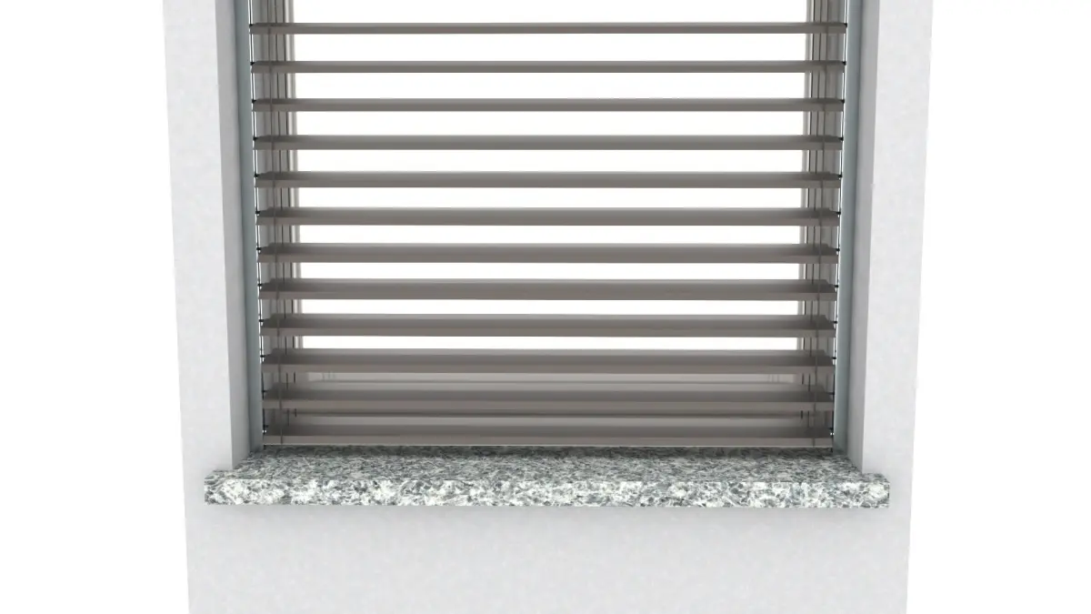 - a small window with blinds down