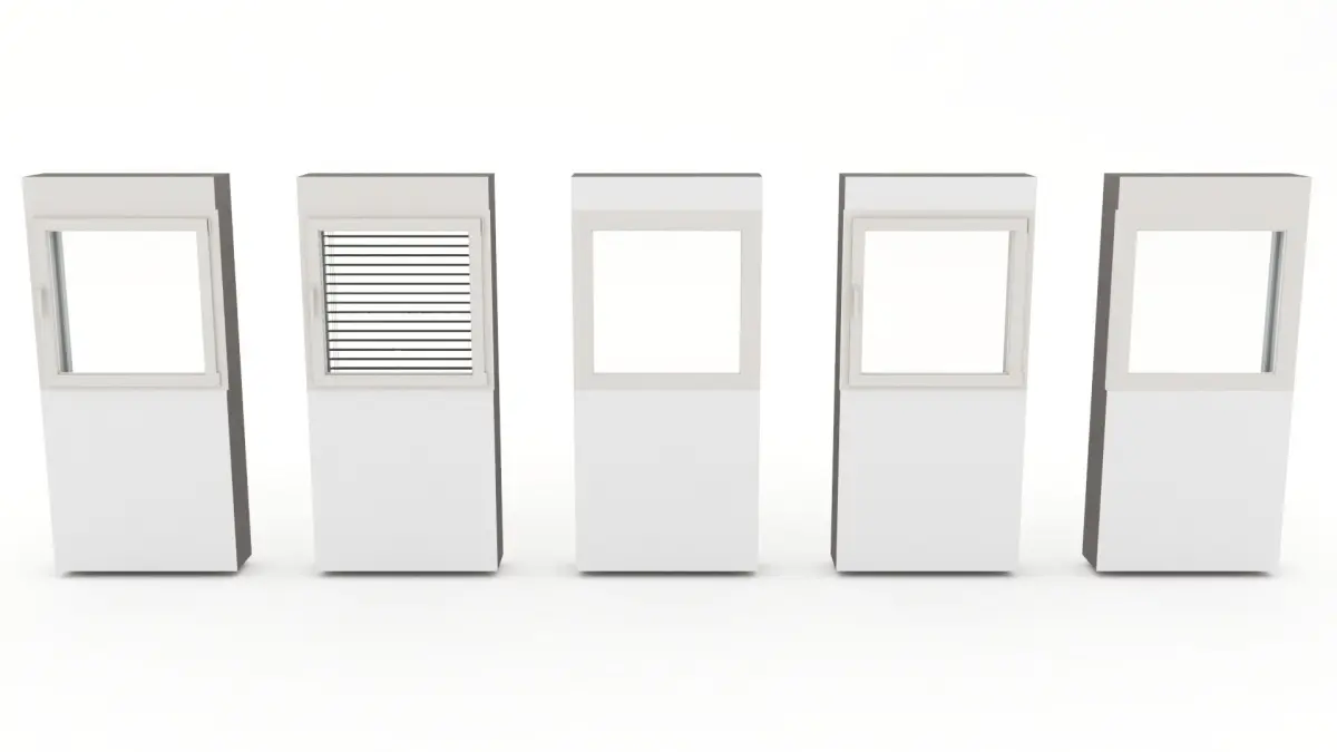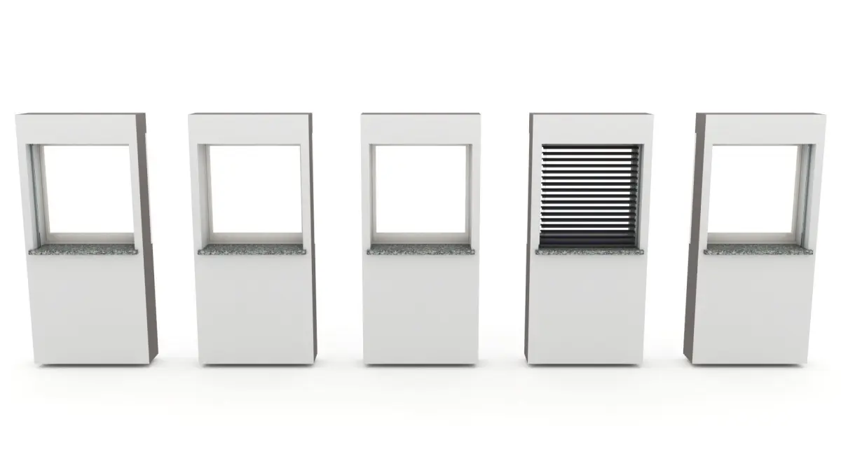 - a small fixed window with mounted blinds
