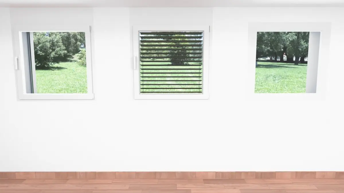 - one French window with blinds down