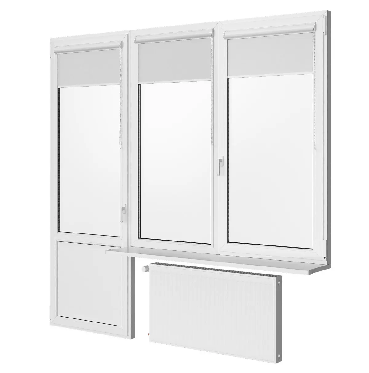 Windows and door with rolls and battery