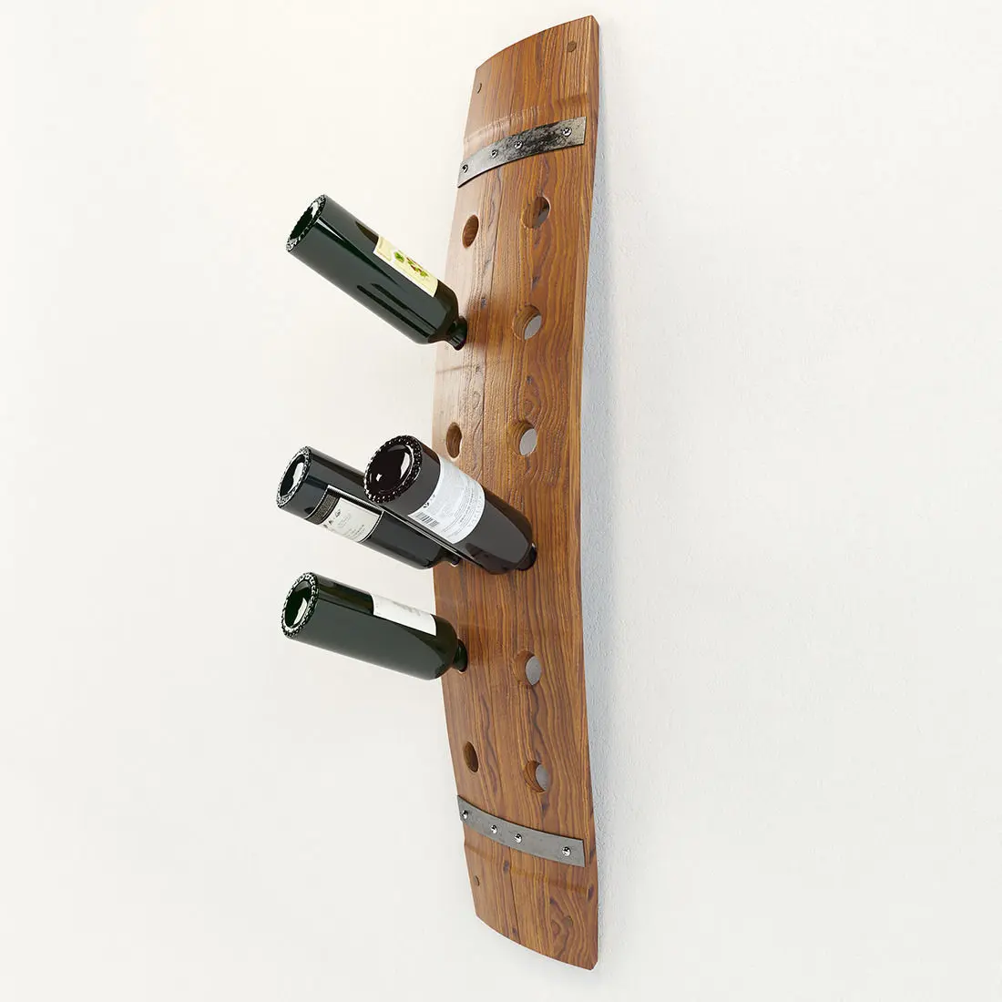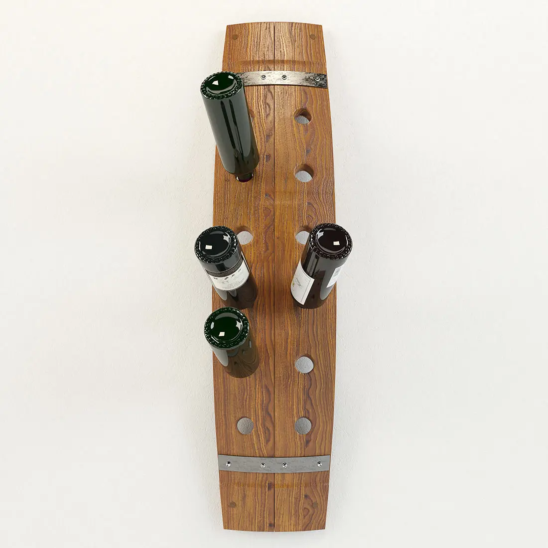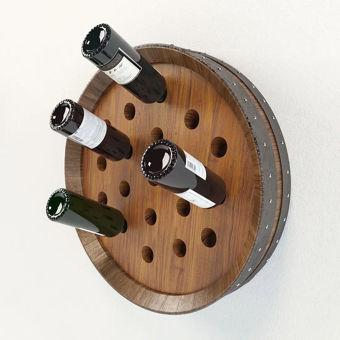 This wine barrel rack takes you full circle. A functional work of art, it's expertly crafted by hand from a wine barrel with the original steel reinforcing bands surrounding the perimeter.This beautifully crafted wine rack. Made by hand staves and accented by the original metal barrel bands, it brings a taste of the wine country to your abode.