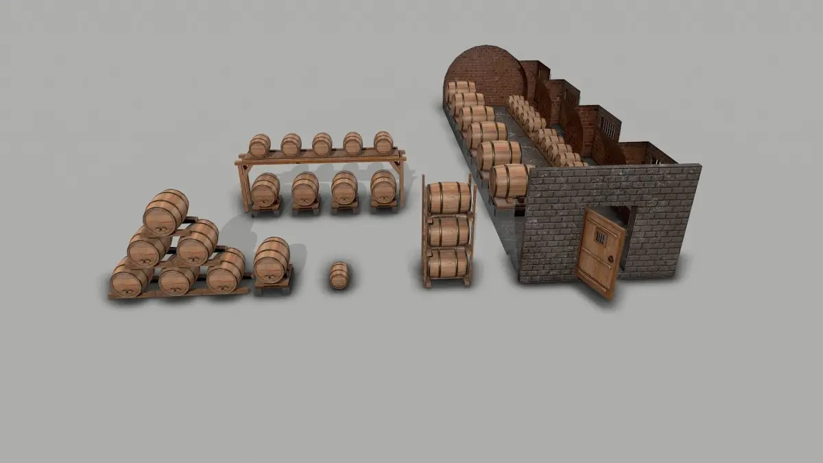 Wine Cellar has 4k texture sets and other objects have 2k pbr texture sets.
