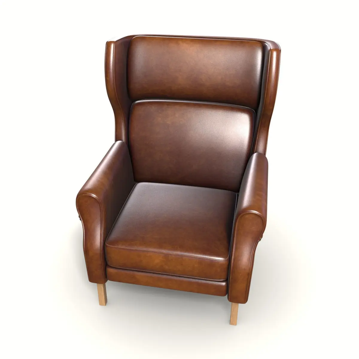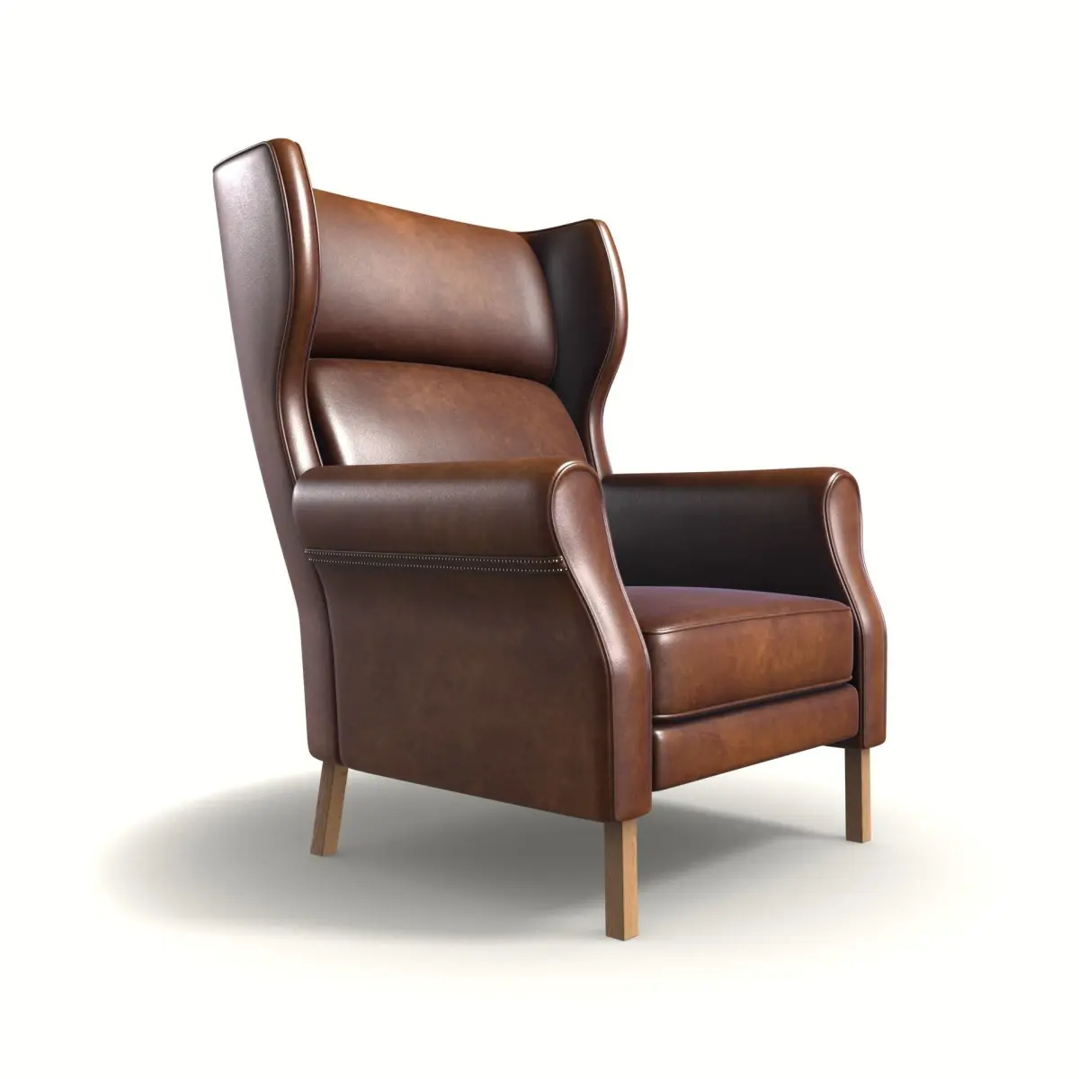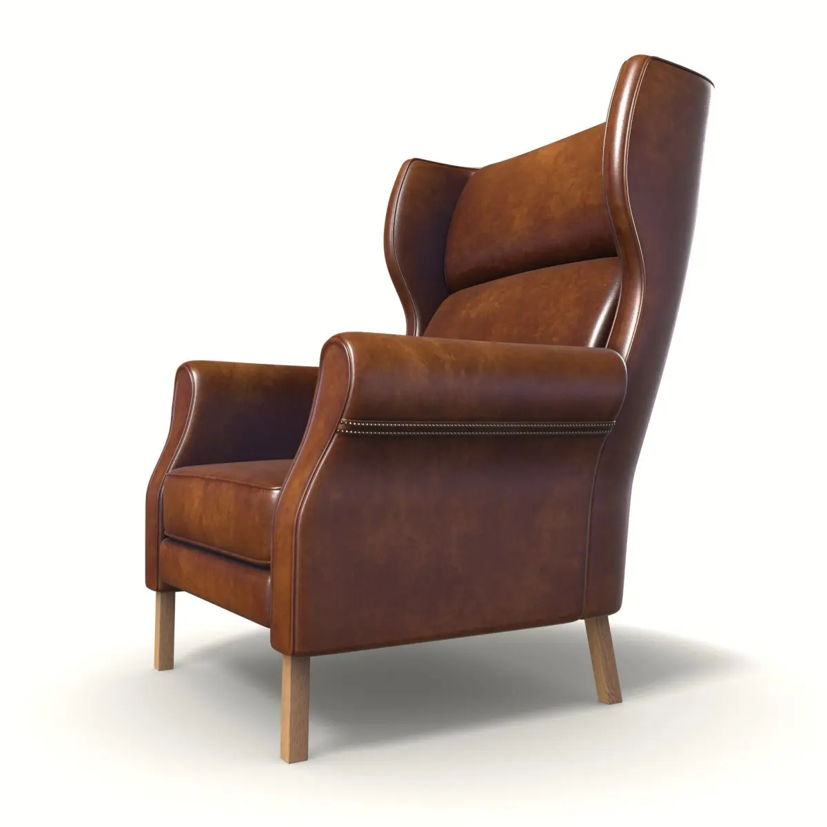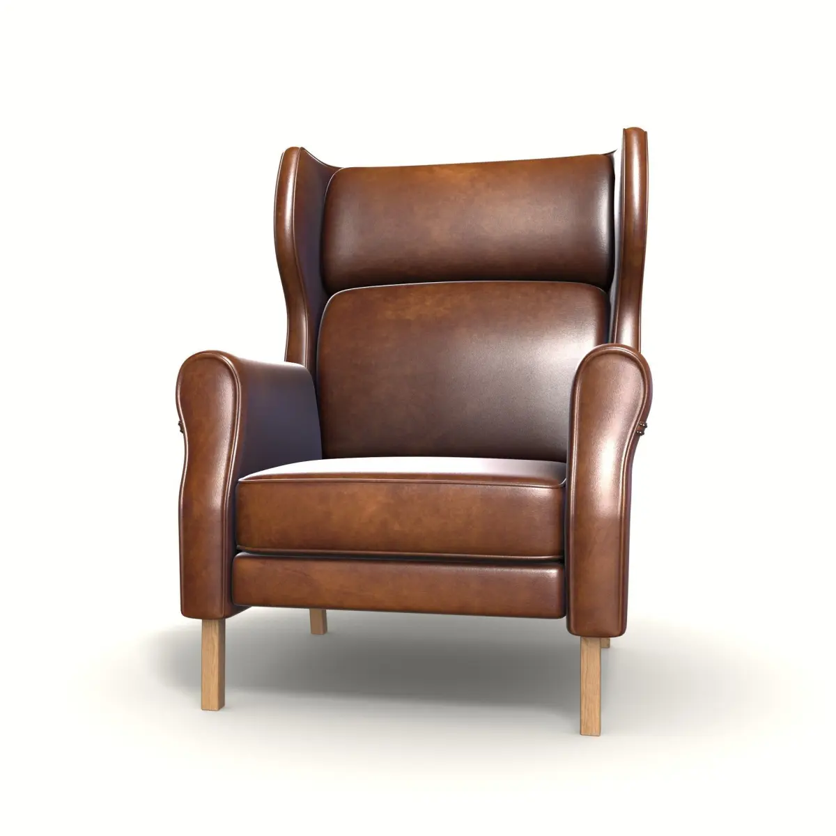 Achieve an industrial look with this stylish wingback chair. The seat is upholstered in a distressed brown leather, exuding rugged appeal. The armrests feature exposed metal accents, adding an edgy touch. The backrest pillow offers comfortable support, and the legs are made of sturdy metal, enhancing the chair's industrial aesthetics.