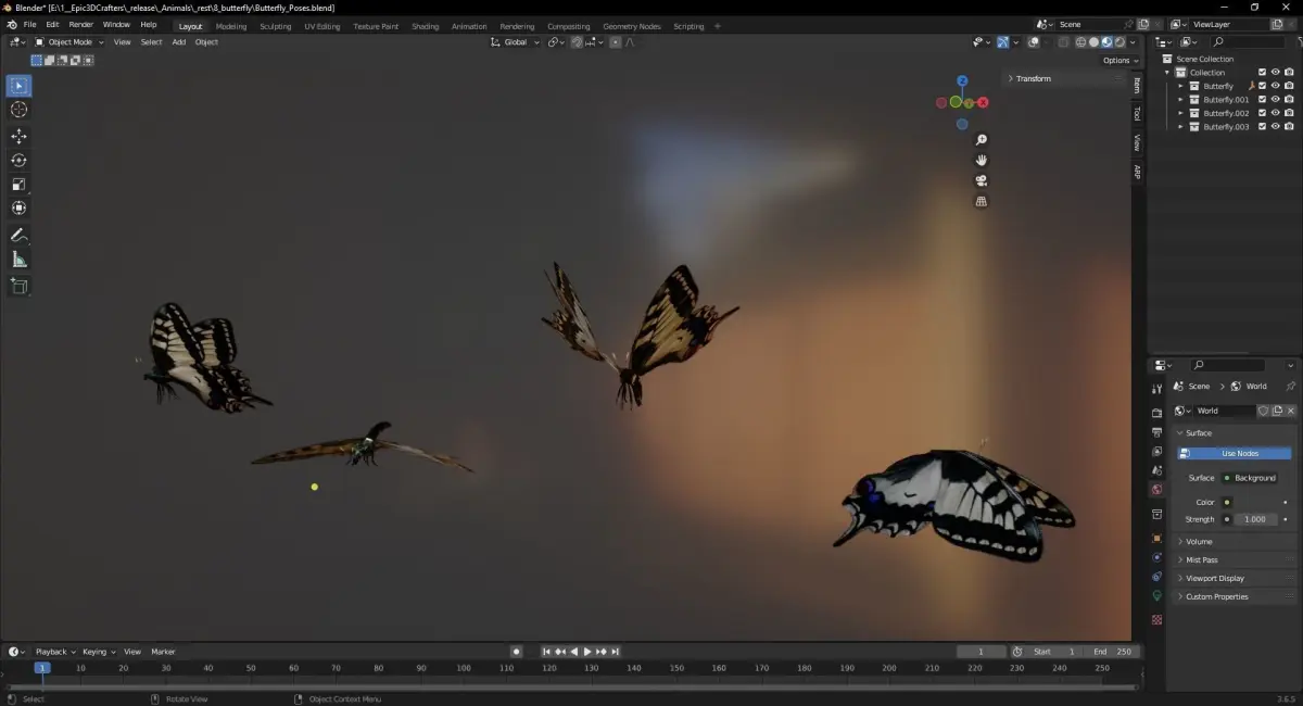 Performance Efficiency: The butterfly model is carefully optimized to balance complex visual details with performance, ideal for real-time rendering.