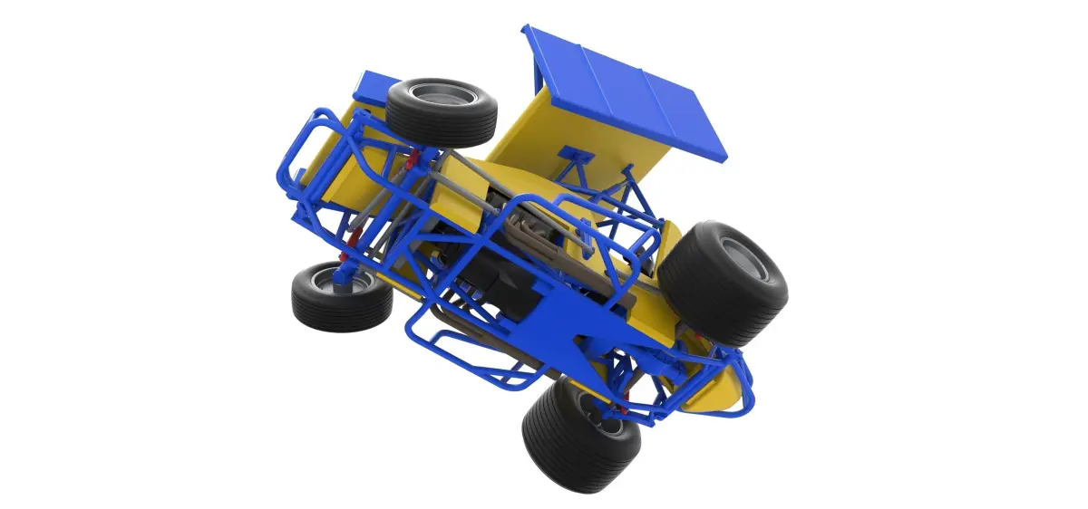 The model consists of parts: Air intake part 1-3, Body, Engine left part, Engine main part, Engine right part, Exhaust pipes, Front rims, Front tires, Front wing, Left exhaust pipes, Radiator, Rear left tire, Rear right tire, Rear rims, Right exhaust pipes, Rim covers, Seat, Shell central part, Shell left part 1-4, Shell right part 1,2, Steering wheel, Tank, Top wing.