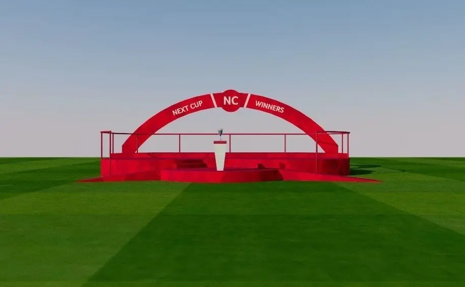Winner podium for sports events of any sport. Football, soccer, basketball, baseball, cricket, handball, futsal...Podium fully customizable. Images with invented and standard design.