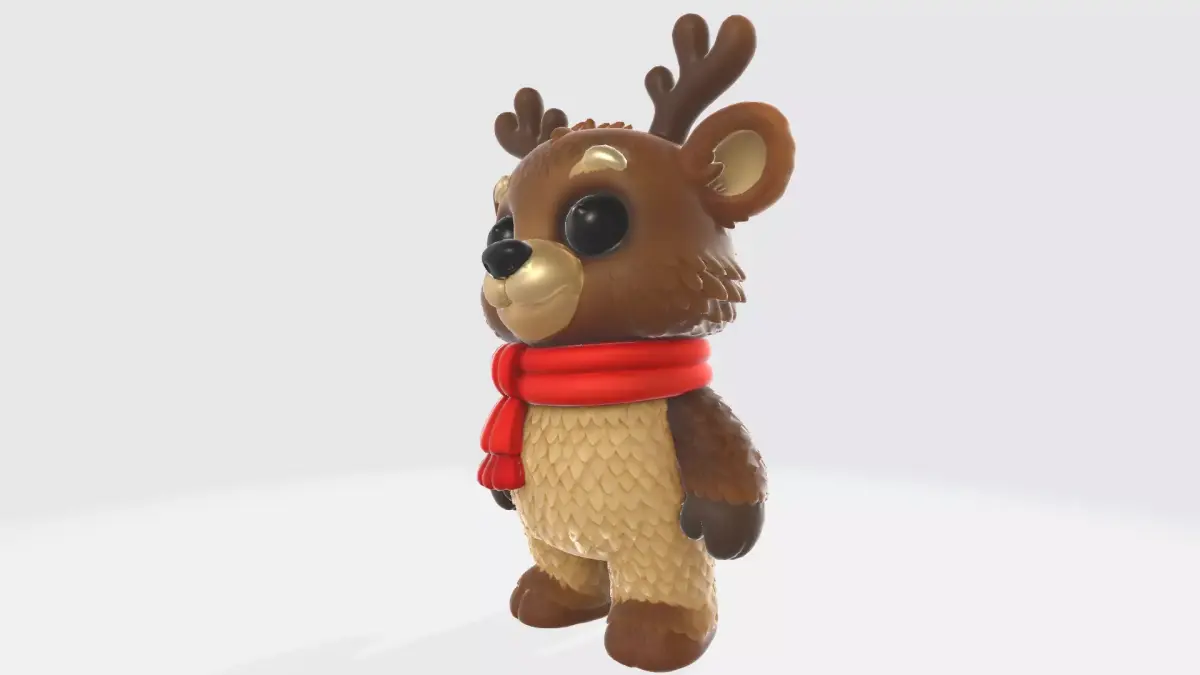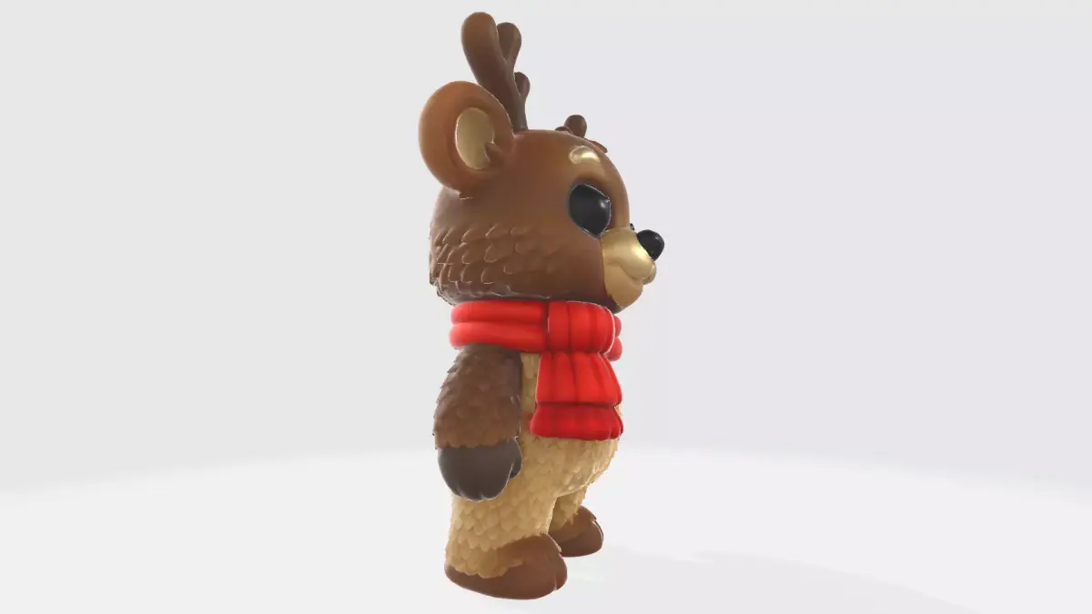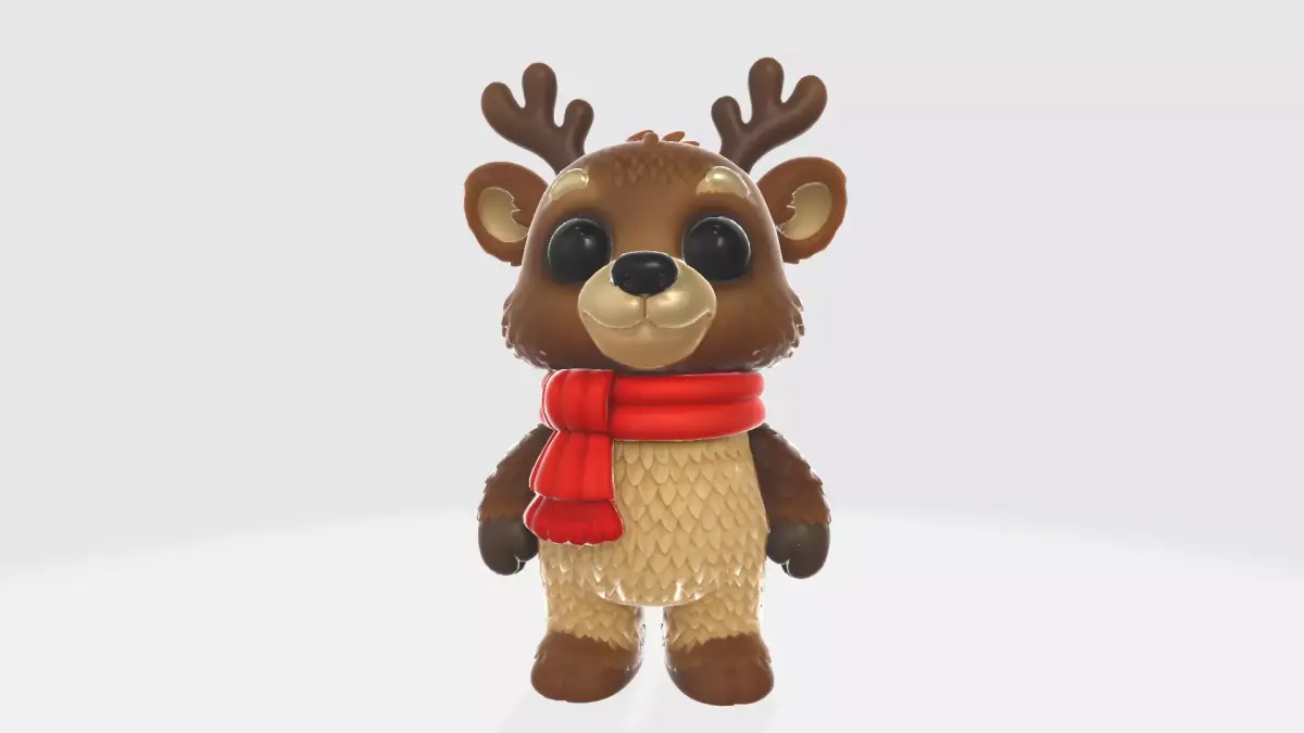 cute reindeer character model , stylized animal 3D figure , holiday creature concept art , collectible toy character design , winter themed 3D asset , adorable fantasy fawn model , high detail sculpted character , festive digital art model , cartoon animal creature design , professional character render asset , children friendly creature design , charming stylized mascot model , imaginative fantasy character asset , expressive animal 3D sculpture , polished character concept design , seasonal artwork character model , detailed fur pattern creature , red scarf winter character , premium stylized model asset , whimsical holiday character design