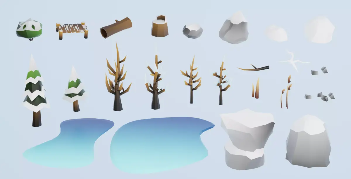 Winter forest asset Low Poly Game Ready