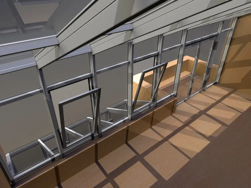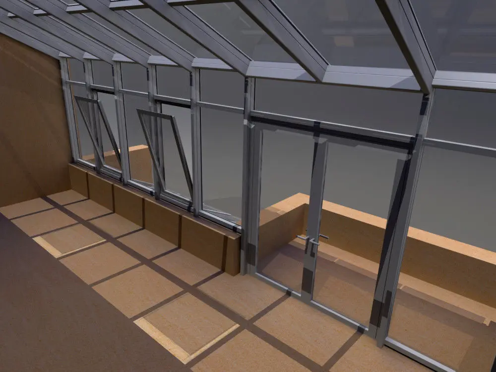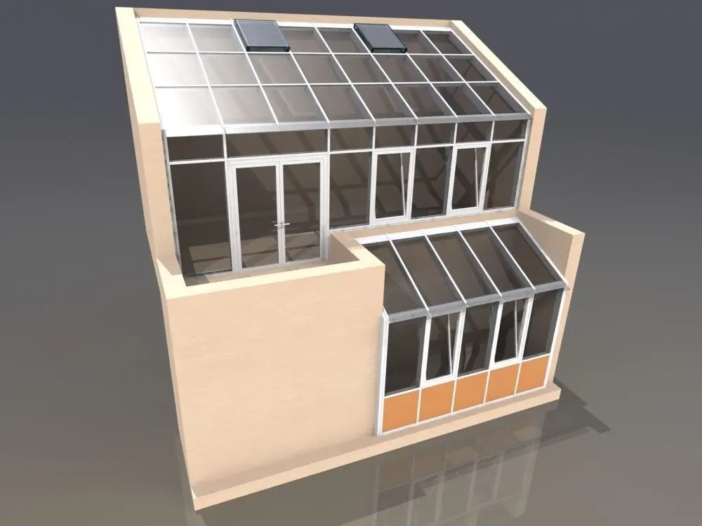 Winter garden project of Schüco profiles with dormer windows, regular windows and doors. Winter garden is situated on two floors with a balcony in front one of them. This is for high-rise building.