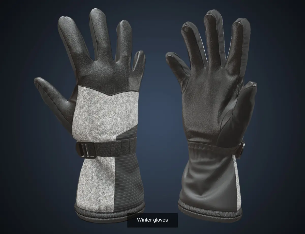 - High quality 3d models of winter gloves.