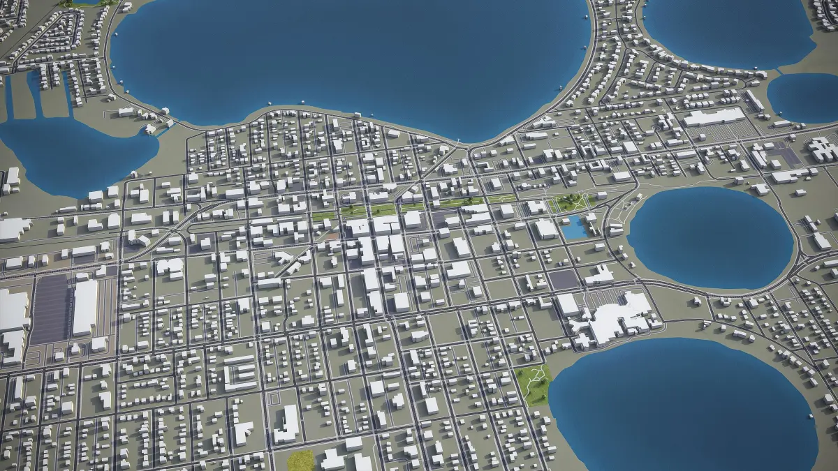 - Full city extents up to 100 x 100 km — or crop to an area of interest for better format compability and scene performance
