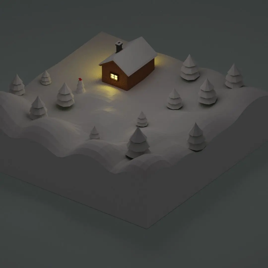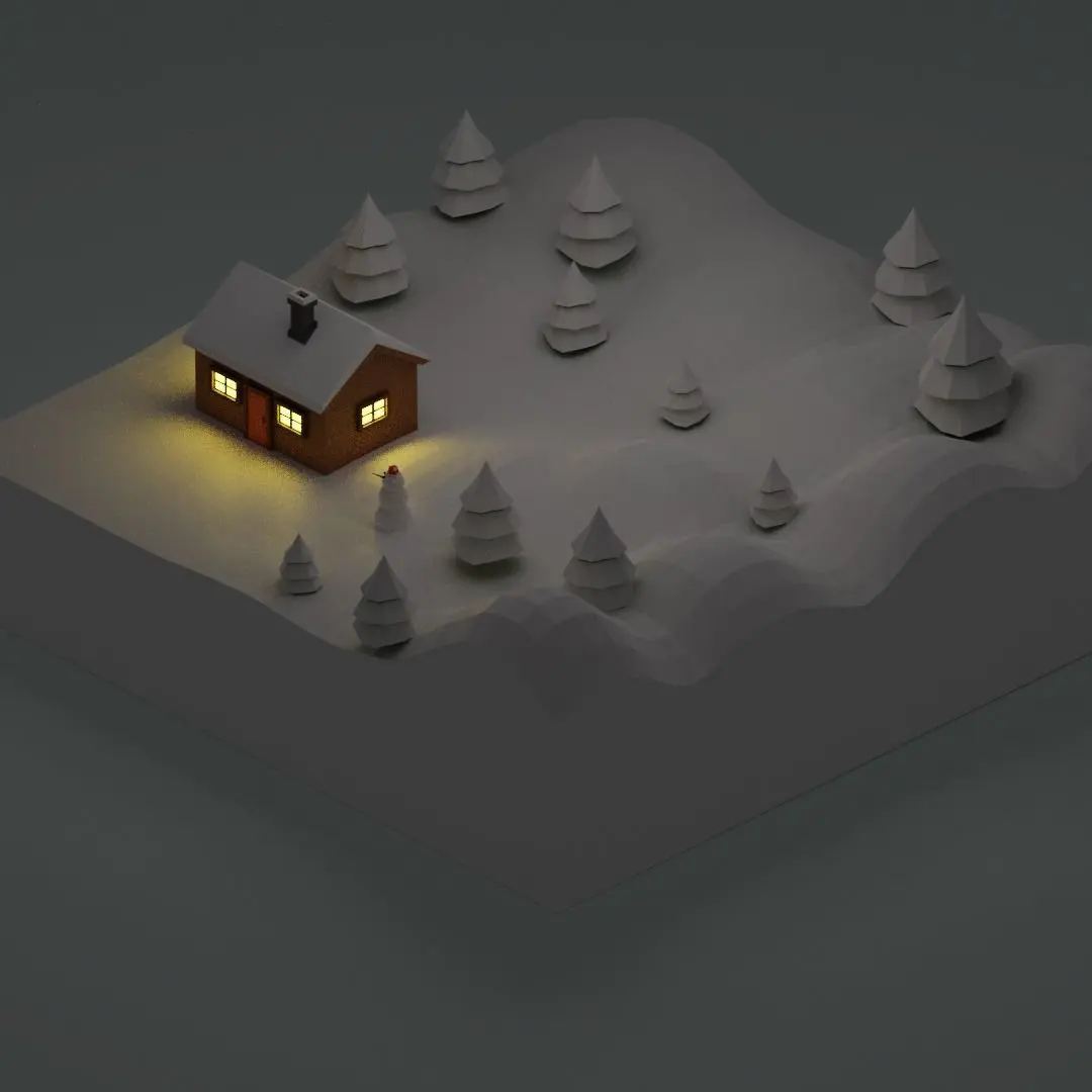 Small winter house with a snowman. Chrismas theme. Perfect for game location. Low-poly.
