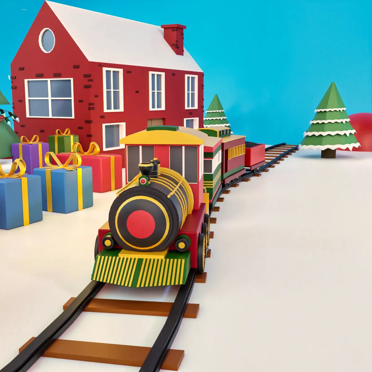 - Train with 3 wagons (From Blender you can modify its position, it contains the curve modifier)