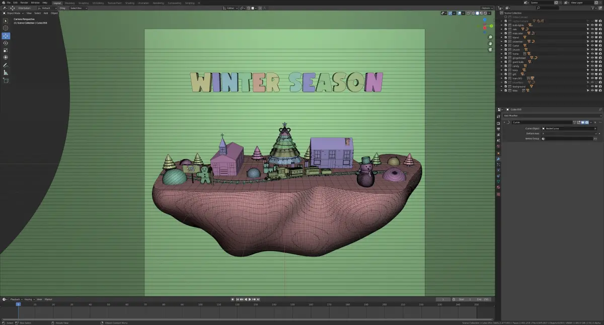 This winter scene was made with Blender 2.91The elements included are: