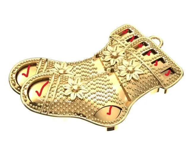 A winter socks pendant makes a perfect Christmas gift!the STL files come in two versions: one featuring gemstones in the middle of the socks, and the other without gemstones.Both files, However, include warm enamel designs on the tip of the socks, their heels, and the top of the socks.