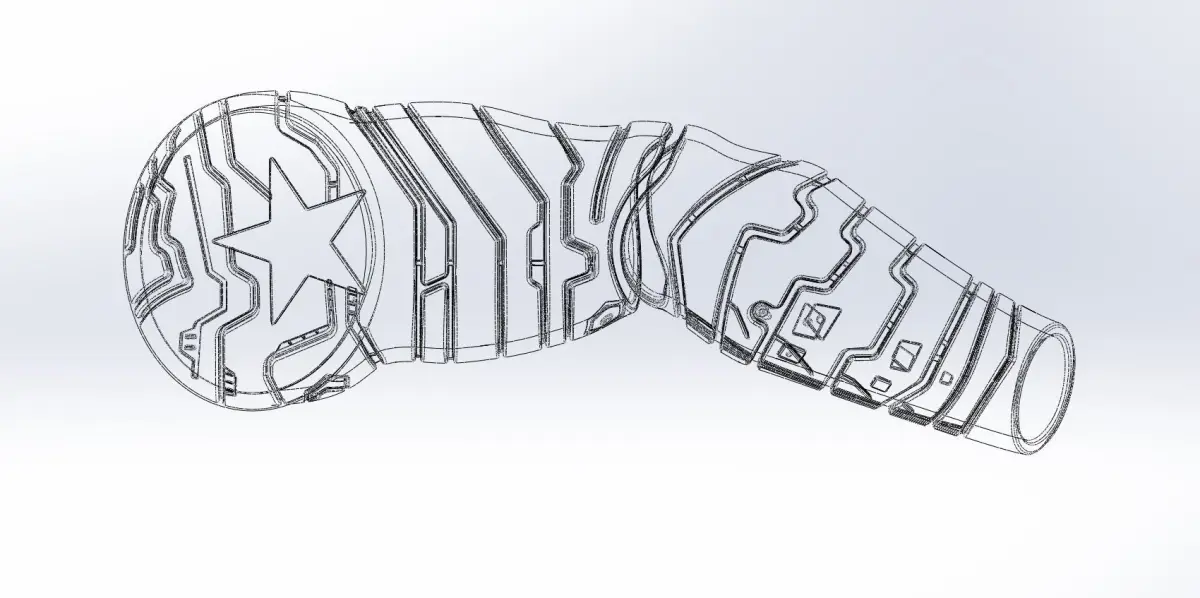 A 3D-model of the metal arm of the winter soldier from the Marvel films designed by commisison and meant for 3d printingthe model is in two parts, upper and lwoer arm and includes combined files for previewing/cgthe parts are designed for printability and wearability and include both CAD exchange formats for easy editing and printable STL and mesh files in different resolutionsthey can be scaled and stretched and remain easily printable