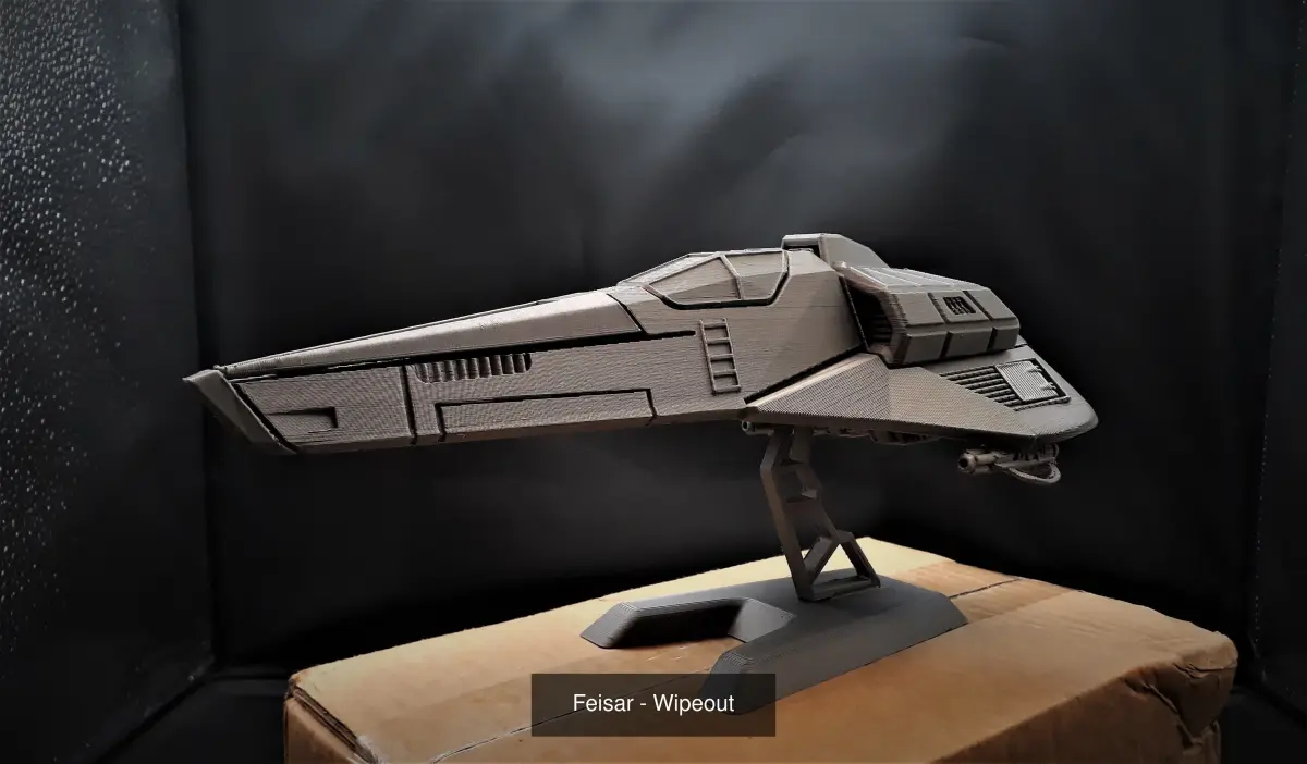 The four iconic spaceships from the video game Wipeout!Display models that can be completely removed to show off their mechanical parts
