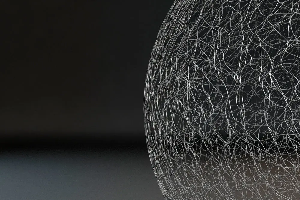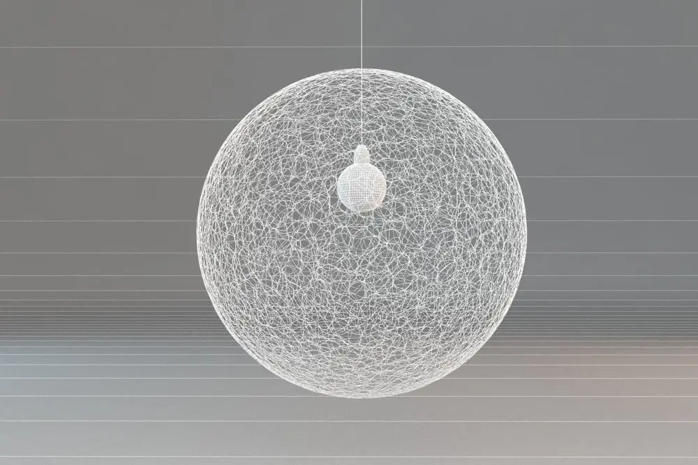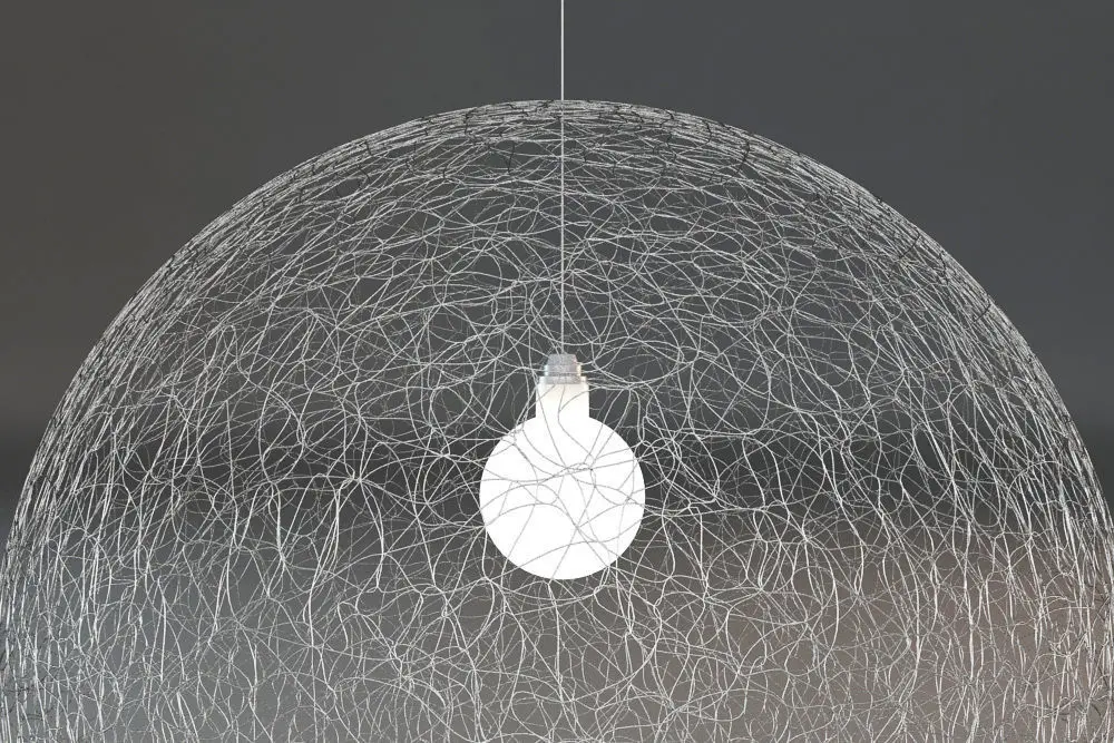 A DETAILED 3D MODEL OF A WIRE HANGING CEILING LAMP;