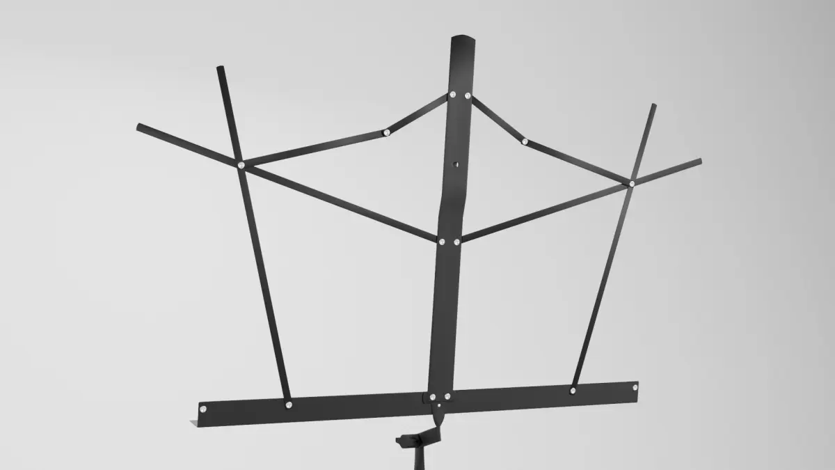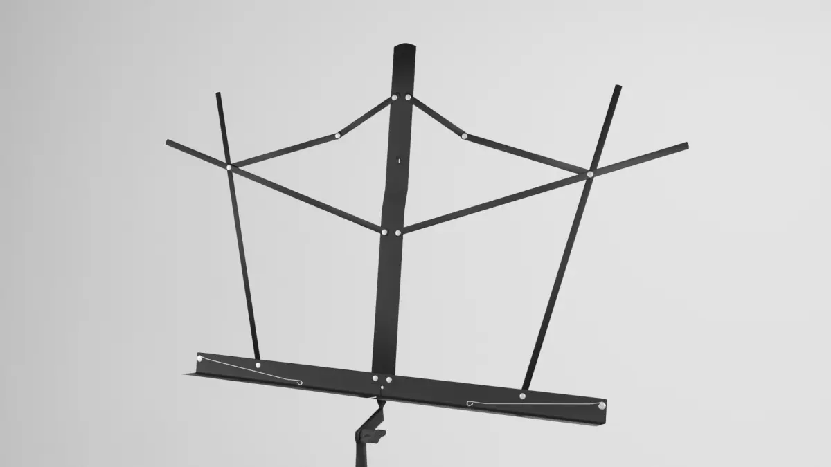 A black, metallic wire stand used for holding sheet music. More often dumps music all over the floor than it does hold it.