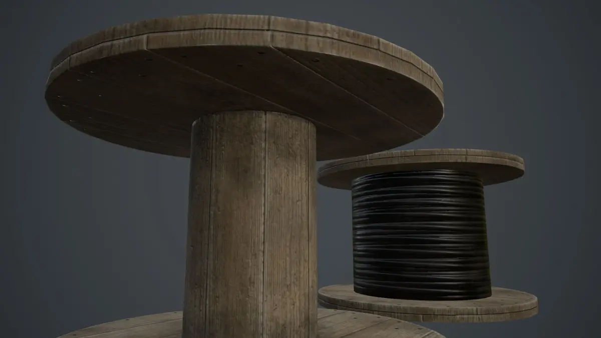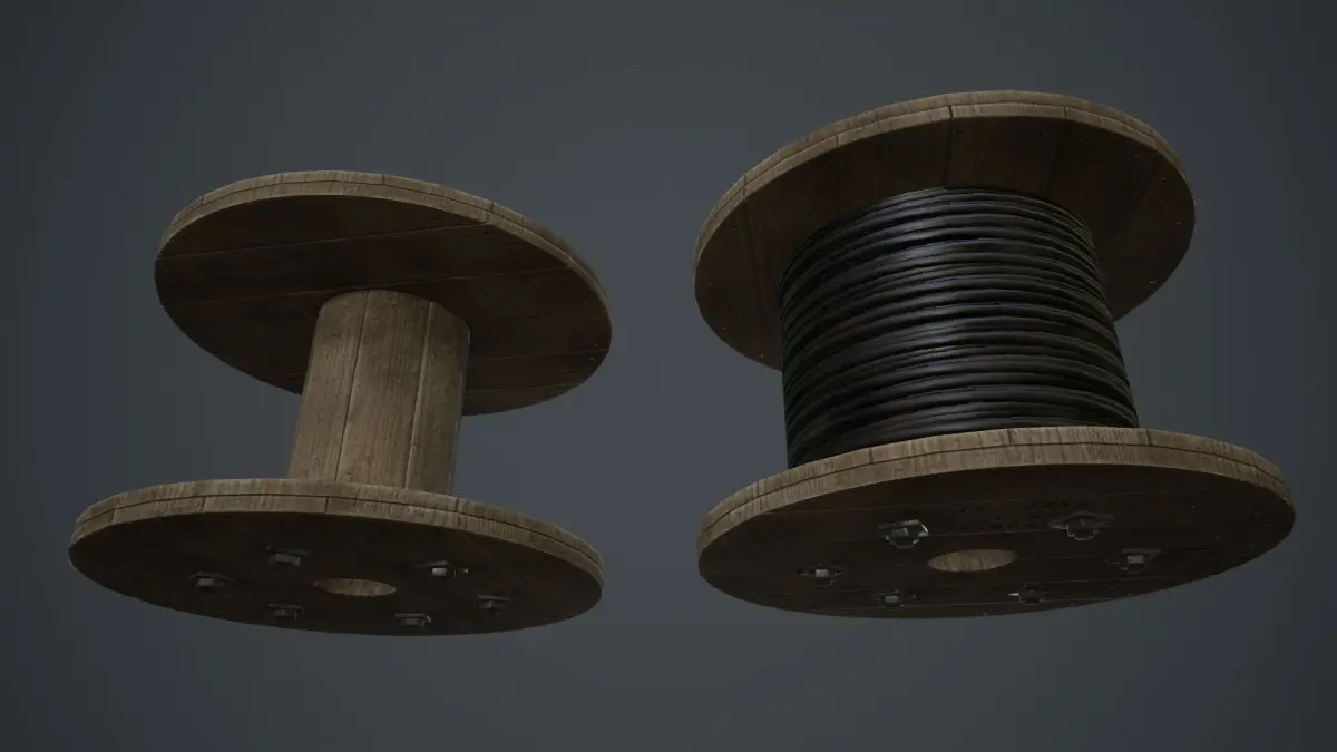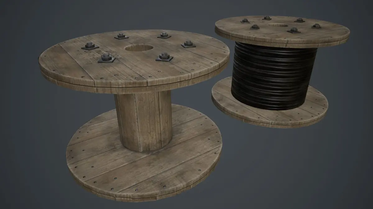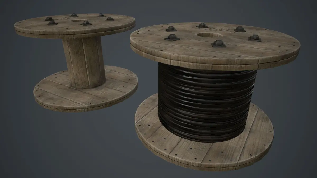 Low poly Wire Spool with PBR Textures. There are two different wire spool variations(with cable and without).