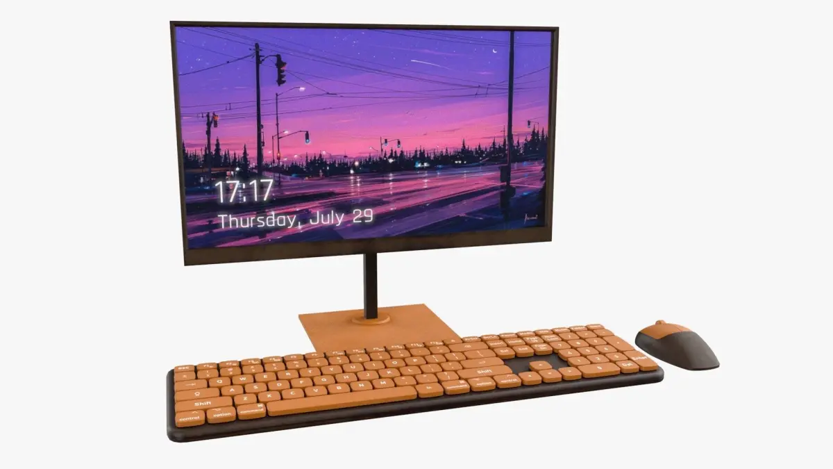 sweet pc computer monitor keyboard mouse set work colorful interior modern decoration room furniture cartoon wifi wireless gamer game