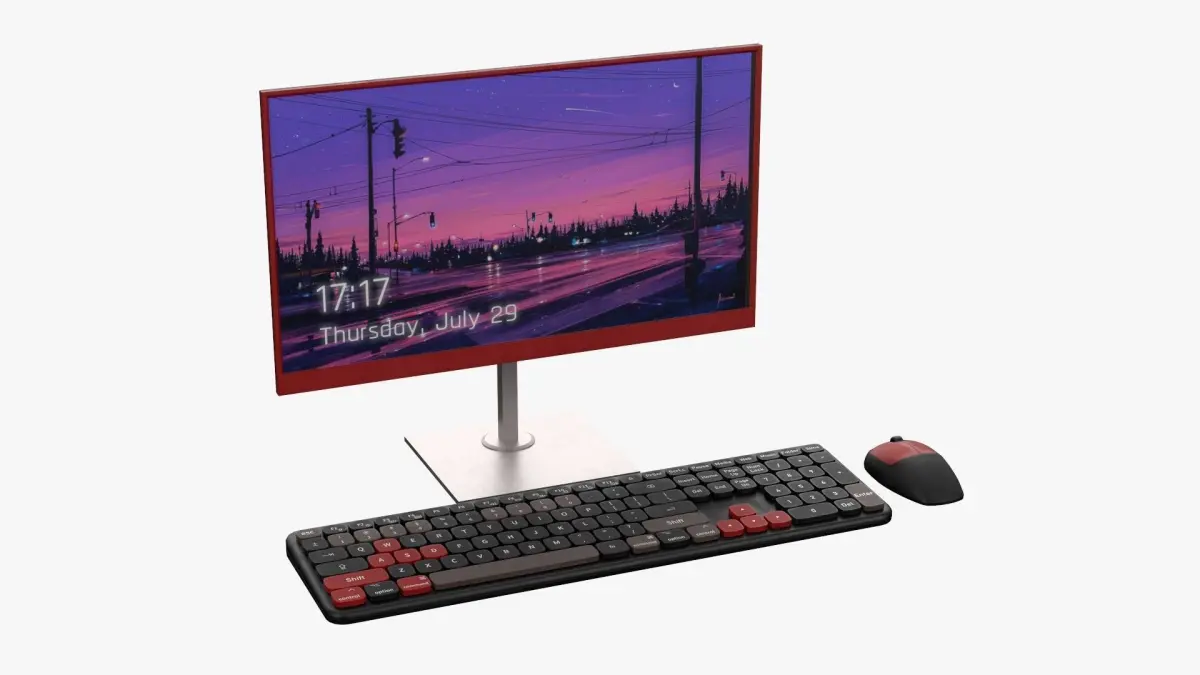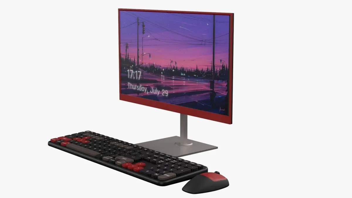 sweet pc computer monitor keyboard mouse set work colorful interior modern decoration room furniture cartoon wifi wireless gamer game