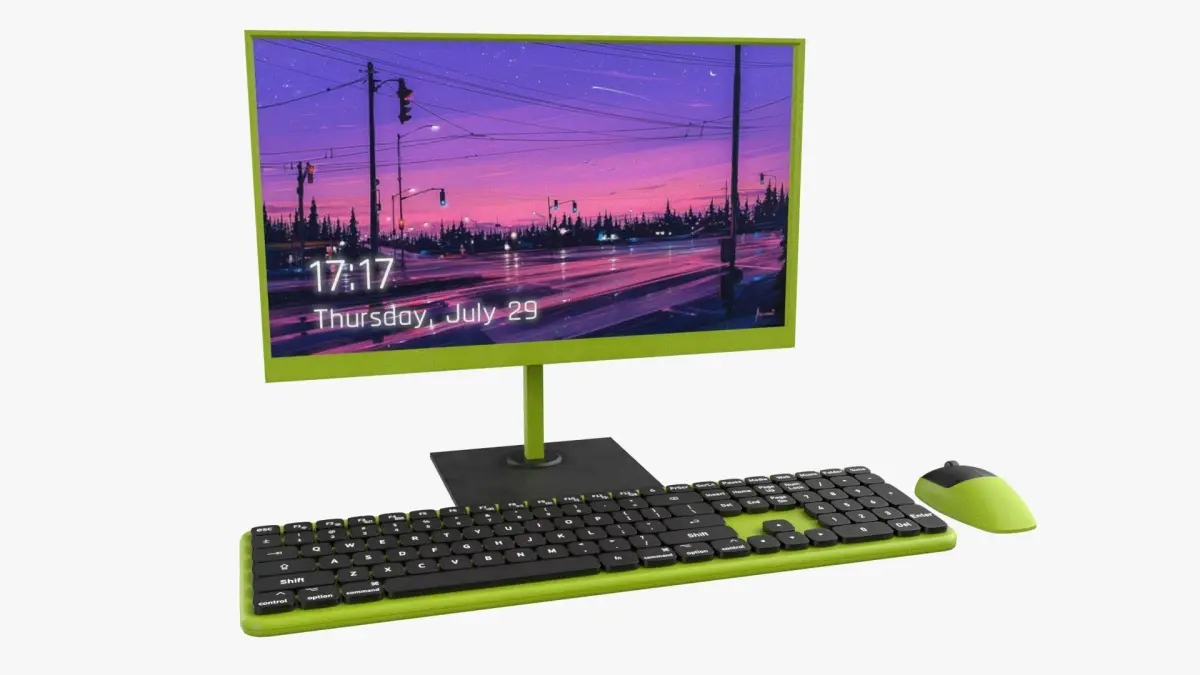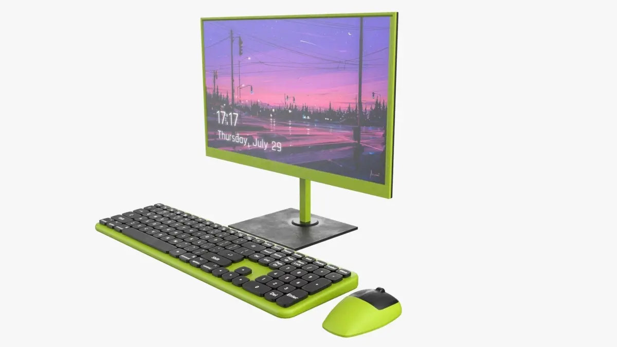 Wireles Computer Set Keyboard Mouse Monitor Green-Black Version