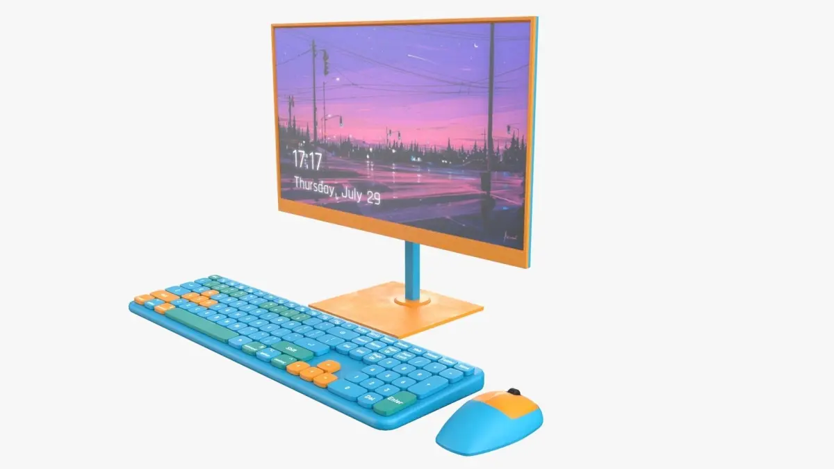 sweet pc computer monitor keyboard mouse set work colorful interior modern decoration room furniture cartoon wifi wireless gamer game