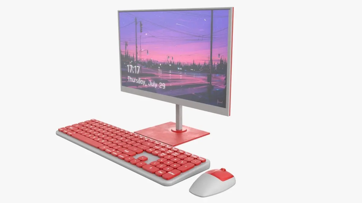 Wireles Computer Set Keyboard Mouse Monitor Red-White Version