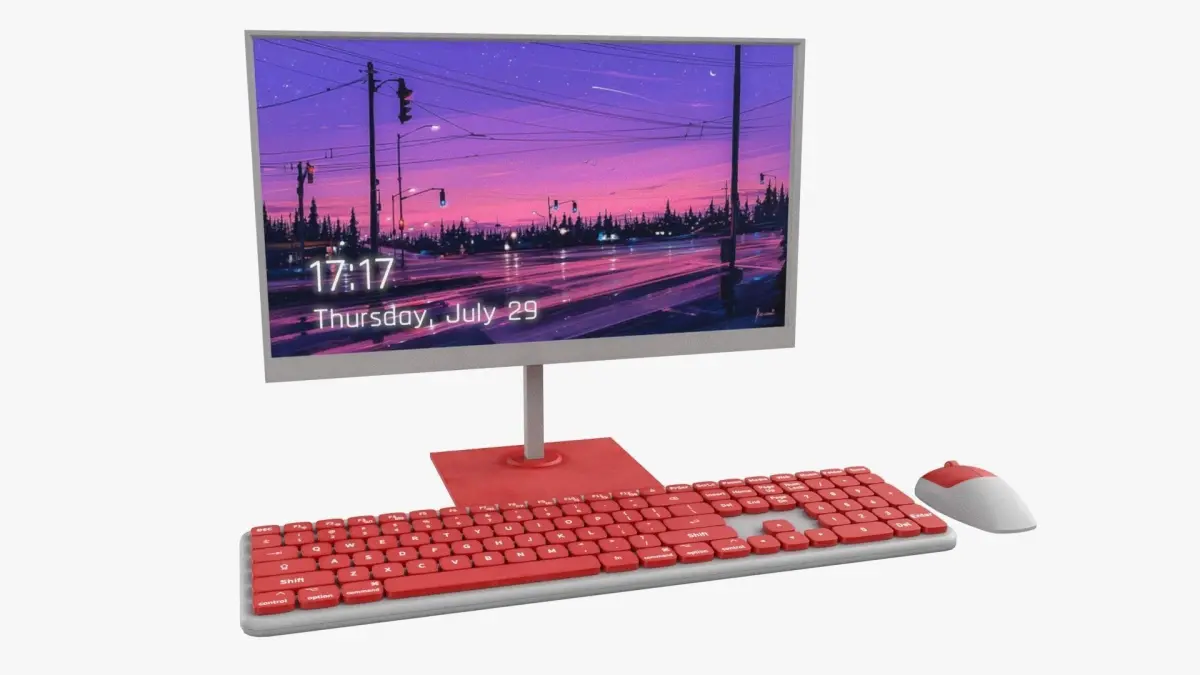 sweet pc computer monitor keyboard mouse set work colorful interior modern decoration room furniture cartoon wifi wireless gamer game
