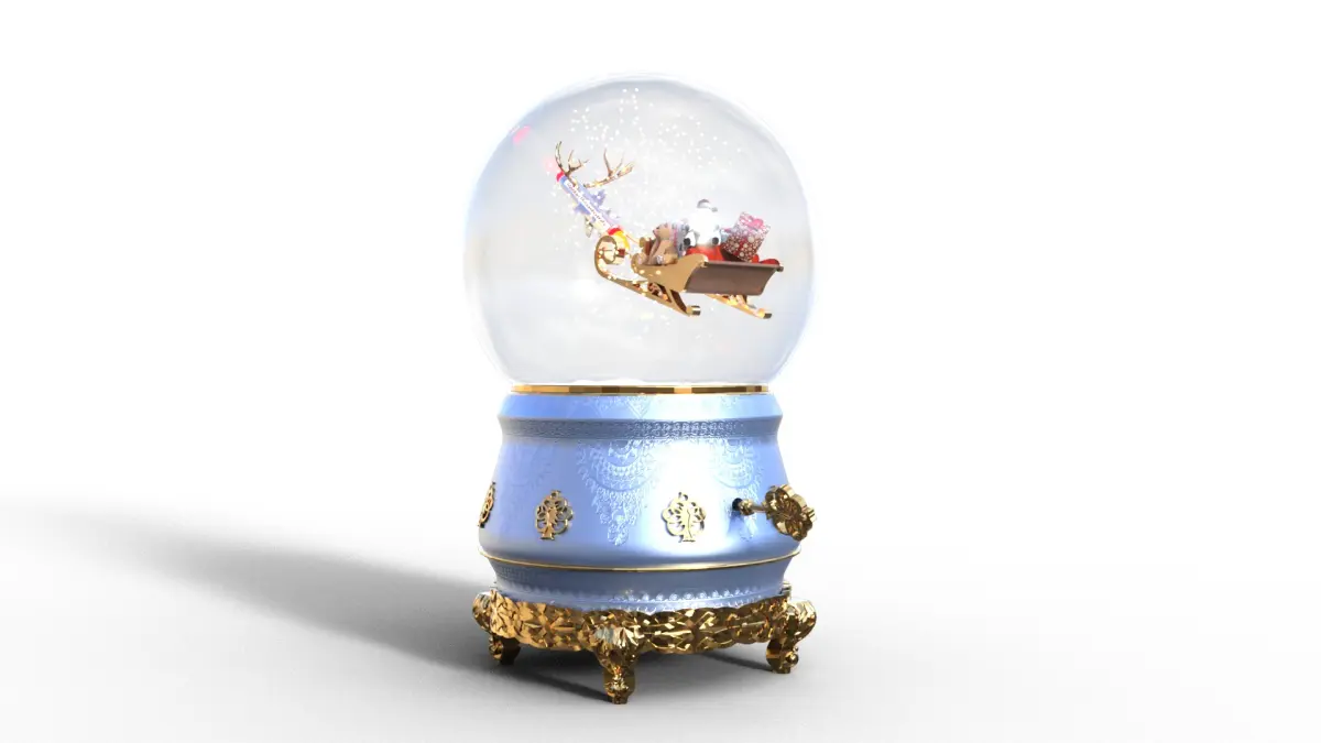 A snow globe (also called a waterglobe, snowstorm,[1] or snowdome) is a transparent sphere, traditionally made of glass, enclosing a miniaturized scene of some sort, often together with a model of a town, neighborhood, landscape or figure. The sphere also encloses the water in the globe; the water serves as the medium through which the snow falls. To activate the snow, the globe is shaken to churn up the white particles. The globe is then placed back in its position and the flakes fall down slowly through the water. Snow globes sometimes have a built-in music box that plays a song. Some snow globes have a design around the outerbase for decoration. Snow globes are often used as a collectible item.