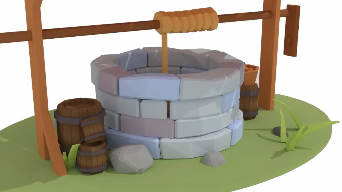 Wishing Well - Stone Well - Vintage Well Low-poly 3D model Free low-poly 3D model