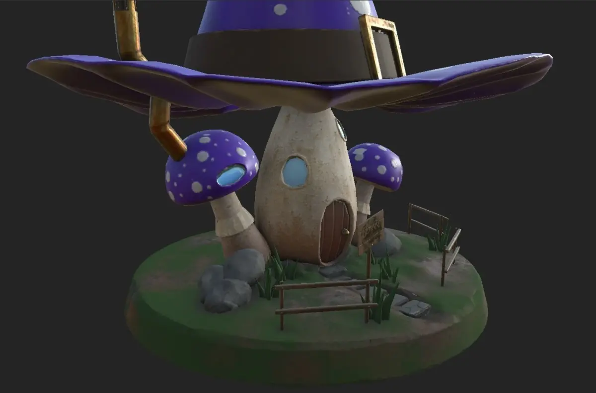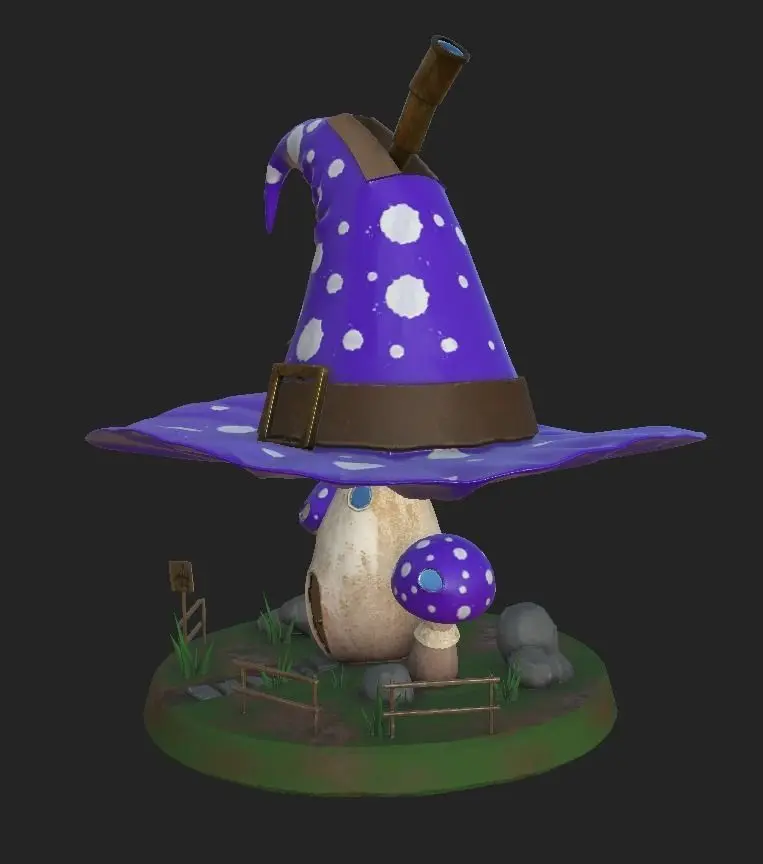Witch House - mushroom style witch house, low-poly 3D model ready for AR, VR, mobile games, PC games and other real-time apps. PBR, realistic asset.