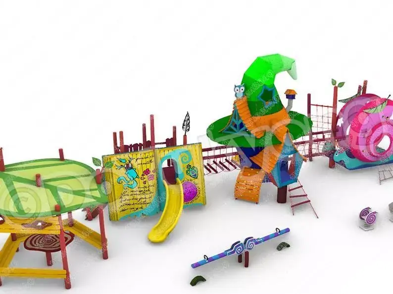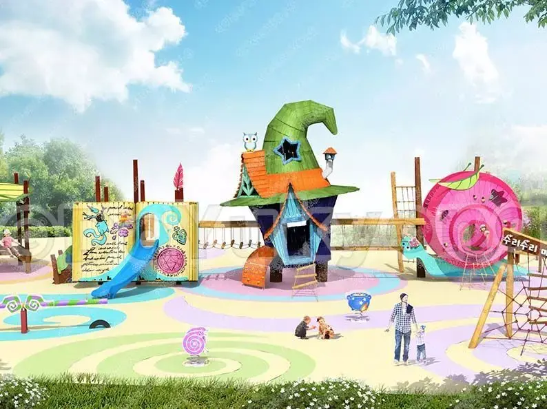 This 3D model is a professional fantasy themed playground design asset created for playground designers, landscape architects, and public space design professionals.The playground is a story driven fantasy combination play system composed of a large giant witch’s hat and magic book with an emerging slide, a snail shaped combination play structure, a magic wand seesaw, a pink snake rocking play element, a witch’s magic jar rocking play element, and a tree nest shelter.The model is designed not as a single piece of playground equipment, but as an integrated playground system in which multiple sculptural play elements are organically connected.With a high number of components and increased structural complexity, it is a practical asset developed for professional design use.All play facilities are designed at real world scale for actual construction, and are developed based on children’s safety standards and fundamental playground planning principles.The model can be directly applied throughout the entire project process, including playground design, master planning, design review, proposal development, and fabrication and construction review.The model is created in Rhinoceros, with all components clearly organized by layers, allowing easy modification, scaling, and layout adjustments according to site conditions.Materials are assigned using Rhino object colors, enabling professionals to freely apply their own color plans, material systems, and rendering workflows.본 3D 모델은 놀이터 디자이너, 조경·공공디자인 실무자를 위해 디자인된 판타지 테마 놀이터 설계용 전문 모델링입니다.본 놀이터는 커다란 자이언트 마녀 모자와 마법책에서 튀어나오는 슬라이드, 달팽이 형태의 조합놀이대, 마법 지팡이 시소, 핑크색 뱀 흔들놀이, 마녀의 마법 항아리 흔들놀이, 나무둥지 쉘터로 구성된 스토리 기반의 판타지 스토리텔링의 조합놀이대입니다.본 모델은 단일 놀이기구가 아닌, 다수의 조형 놀이시설이 유기적으로 연결된 통합형 놀이터 시스템으로 설계되었으며, 구성 요소 수가 많고 구조적 난이도가 높은 실무용 자산입니다.모든 시설은 실제 시공을 전제로 한 실사이즈 설계이며, 어린이 안전기준과 놀이터 기본계획 원칙을 고려하여 디자인되었습니다. 놀이터 디자인, 기본계획, 설계 검토, 제안서 작성, 제작 및 시공 검토 등 실제 프로젝트 전 과정에서 바로 활용할 수 있습니다.모델은 Rhinoceros로 제작되었으며, 모든 구성 요소는 레이어별로 명확하게 정리되어 있어 현장 조건에 맞춘 수정, 스케일 조정, 배치 변경이 용이합니다.재질은 Rhino 오브젝트 컬러 방식으로 설정되어 있어, 실무자는 자신의 컬러 계획, 재료 시스템, 렌더링 방식에 맞게 자유롭게 적용할 수 있습니다.