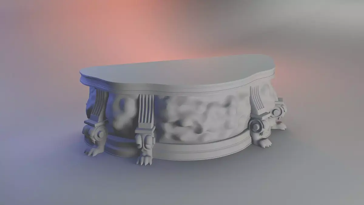 **Recommended magical touch: **print the glass panels in transparent resin, hollow them with drainage holes, and fill with water, mica powder, or shimmering pigment to conjure a snow-globe effect – as though the table itself were alive with hidden energy.