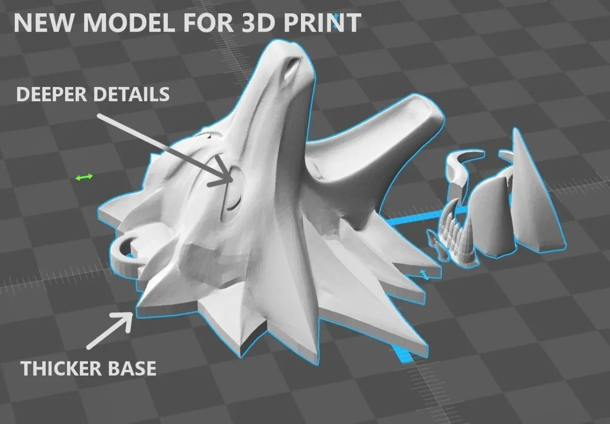 I've recently tried to make a 3D print of this model from ABS. Result was looking good, but the edges were too sharp and some details were almost invisible. So I created version with thicker base and details more significant, which should look much better on the final print.